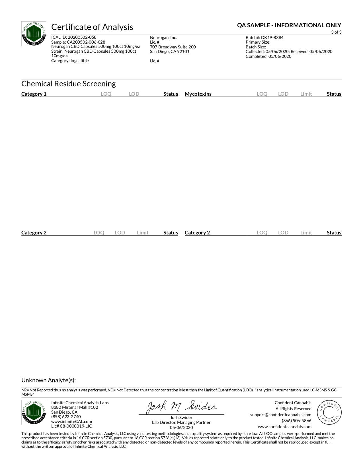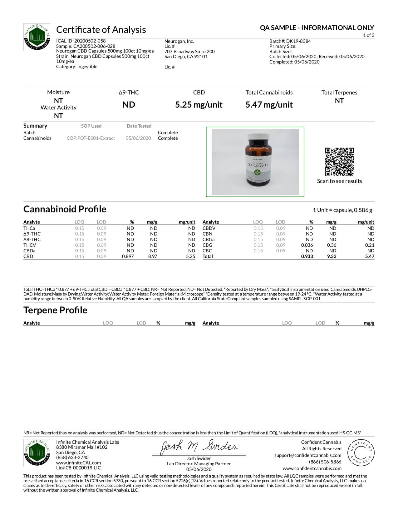 Neurogan, Inc. CBD Capsule Full Spectrum Capsules Lab Report