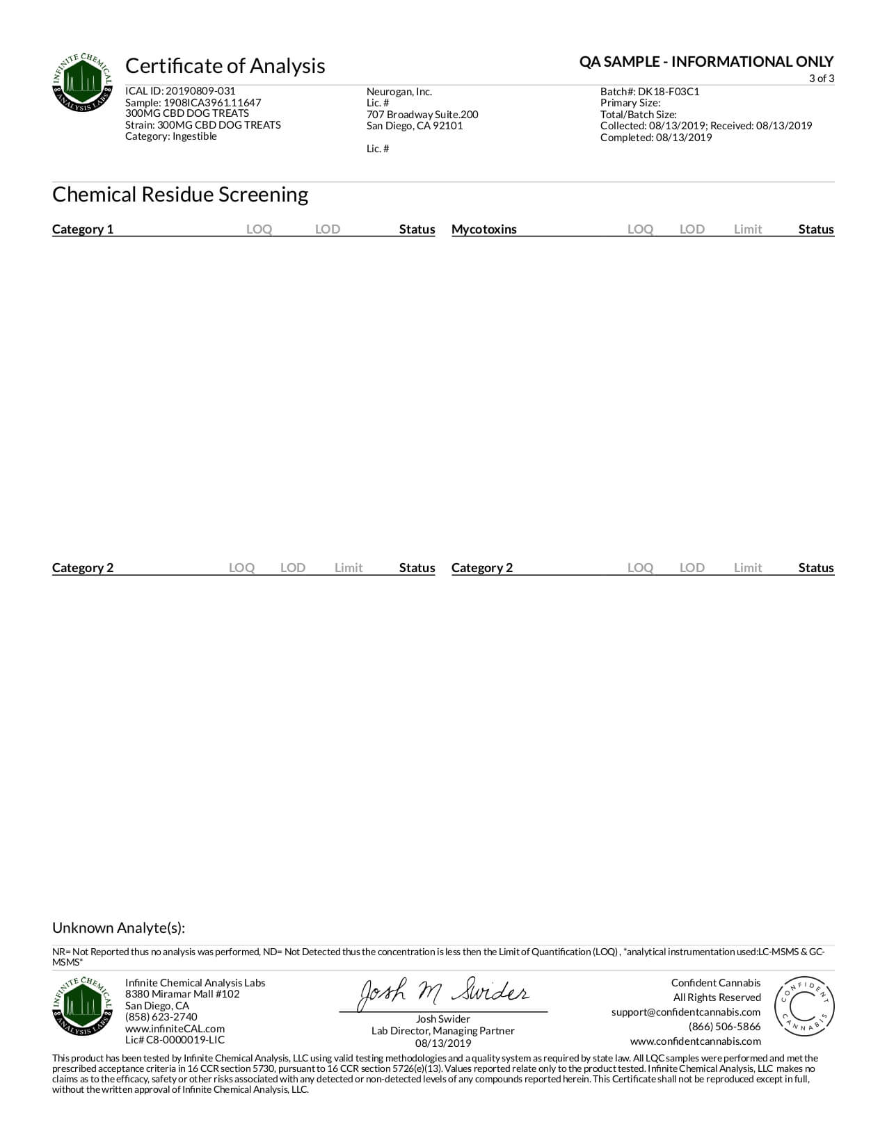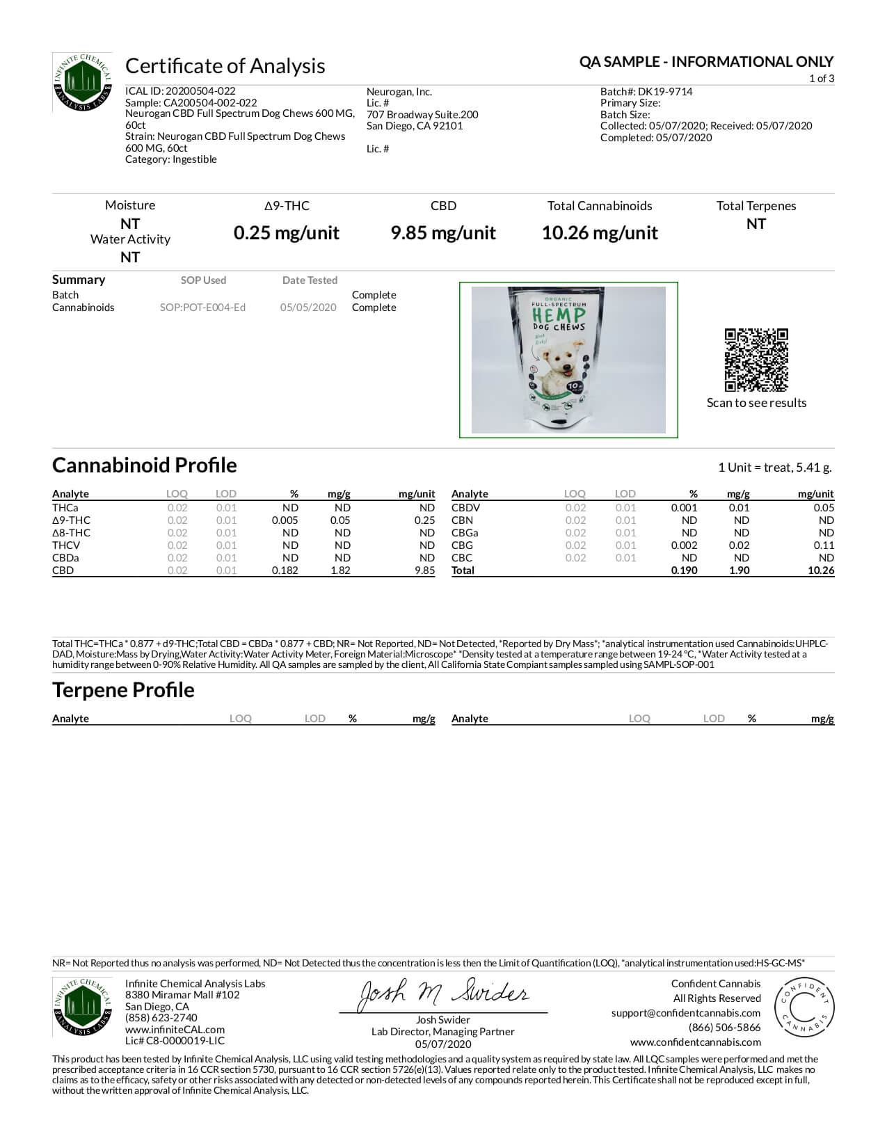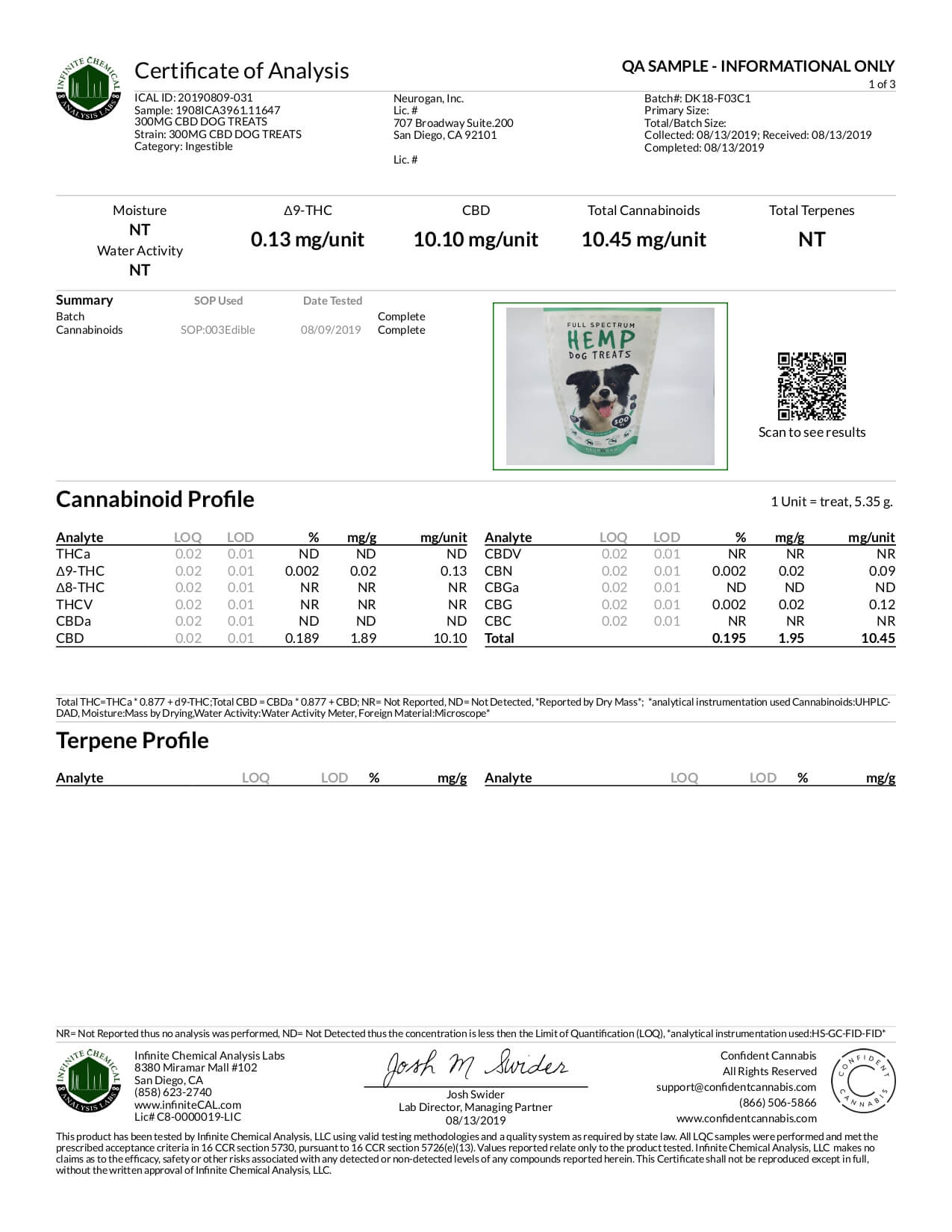 Neurogan, Inc. CBD Pet Treat Full Spectrum Dog Treats Lab Report important details about vaping products.