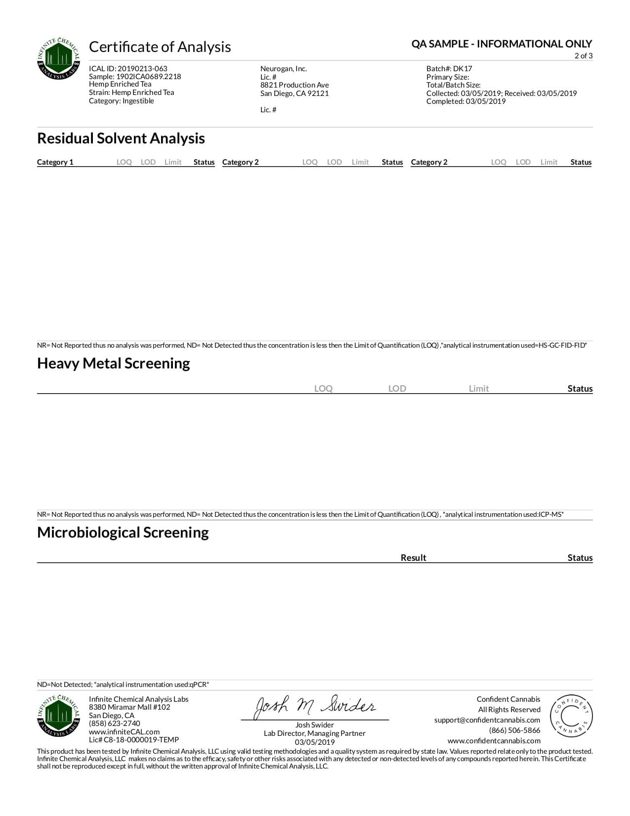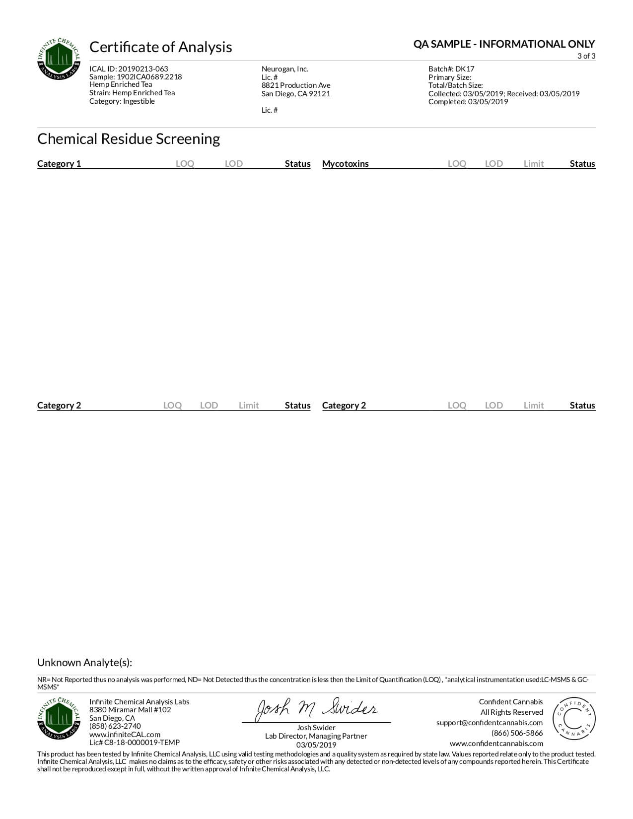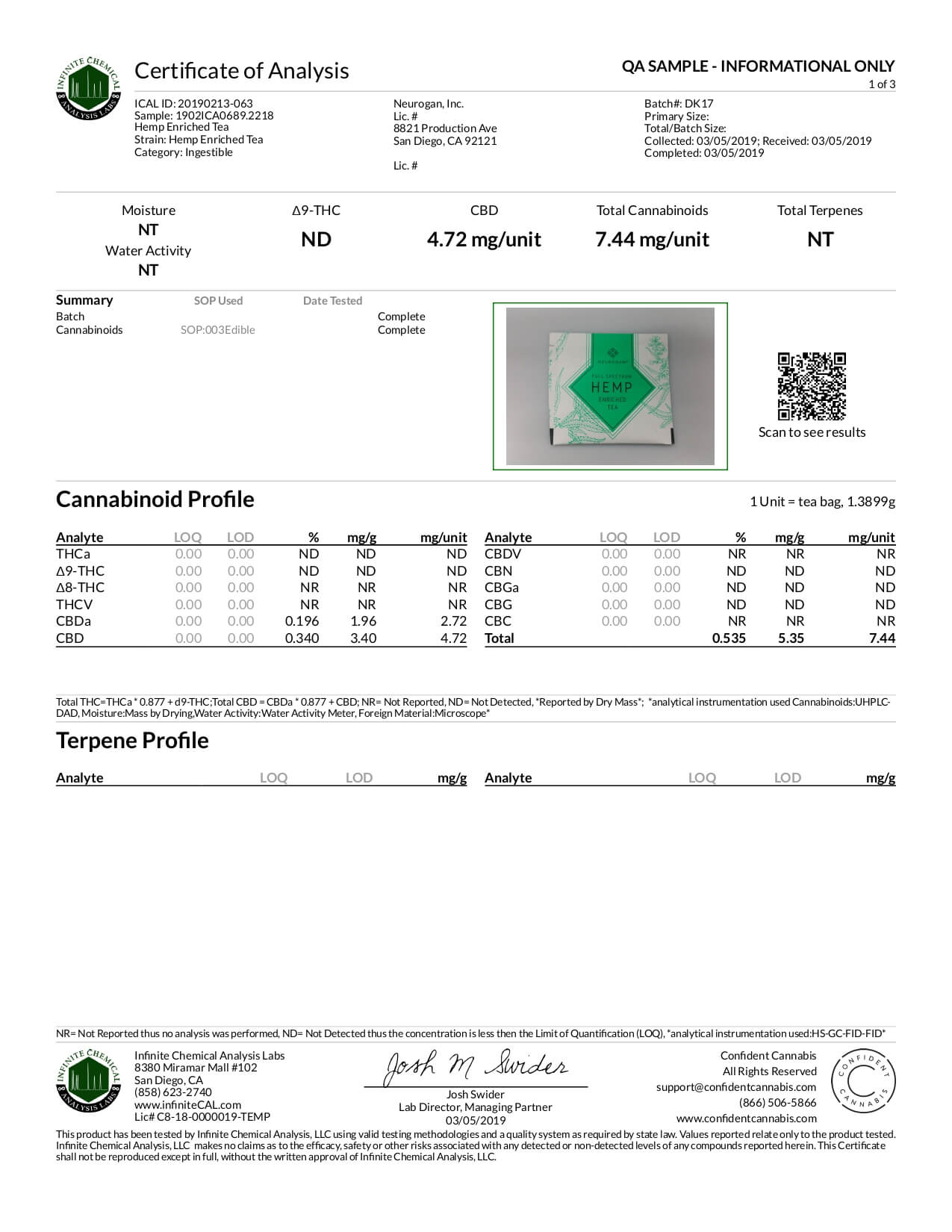 Neurogan, Inc. CBD Tea Lab Report