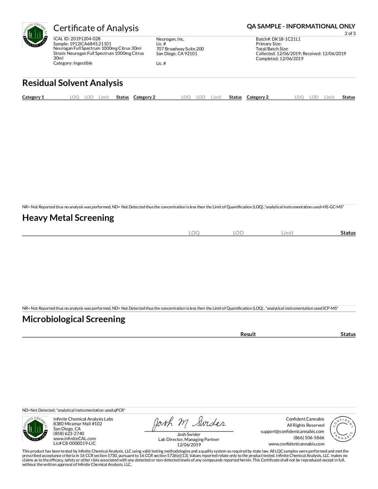 Neurogan, Inc. CBD Tincture Full Spectrum Citrus Lab Report