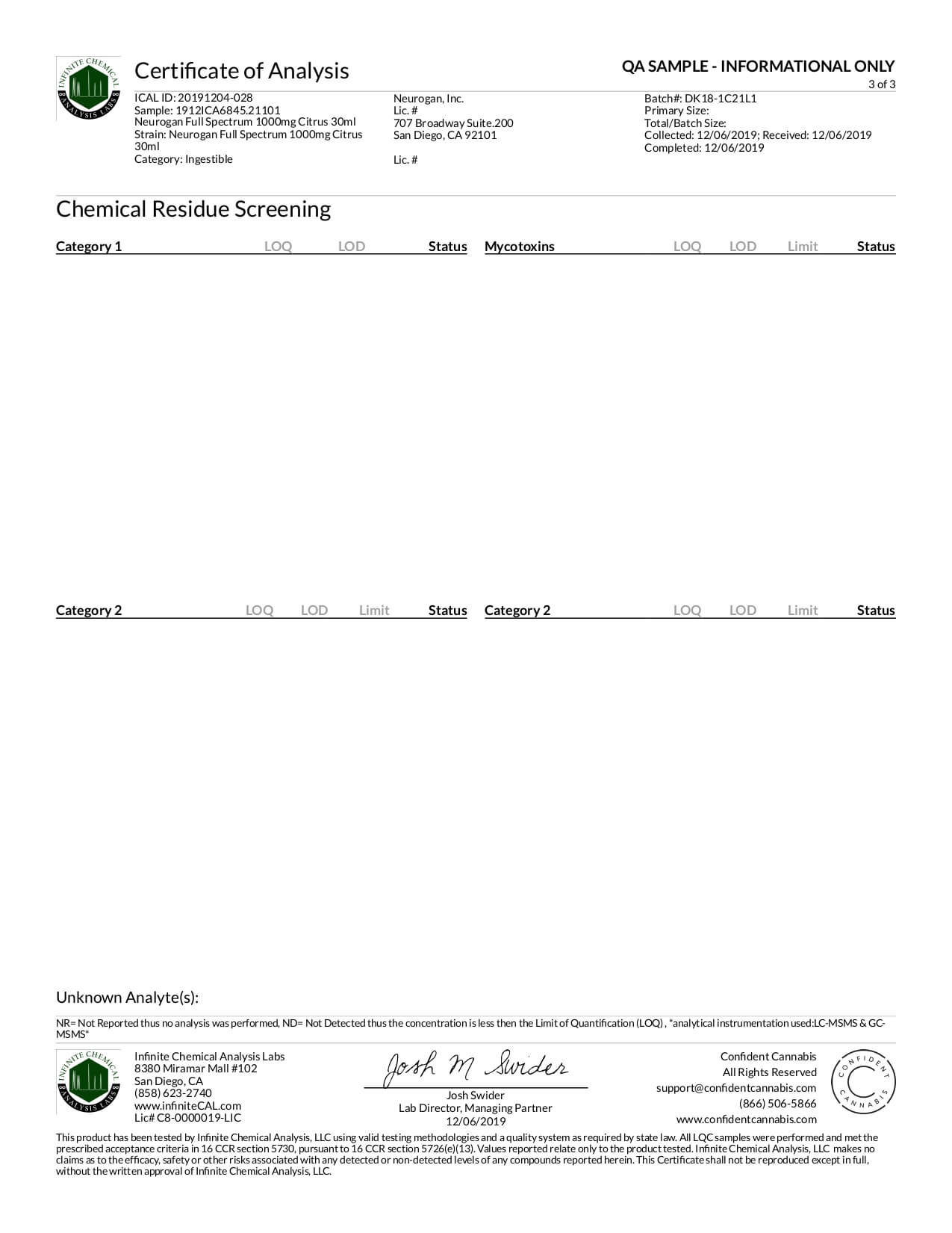Neurogan, Inc. CBD Tincture Full Spectrum Citrus Lab Report important details about vaping products.