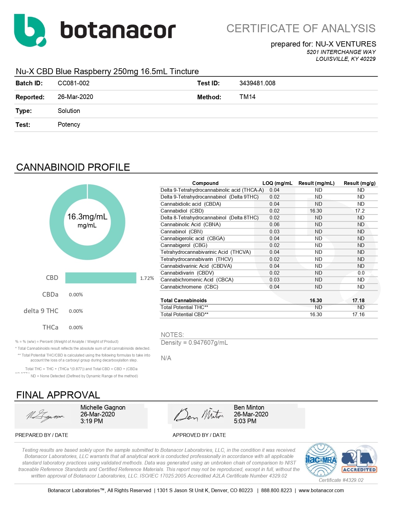 NU-X CBD Tincture Blue Raspberry 250mg Lab Reports test results with reference to CBD products.