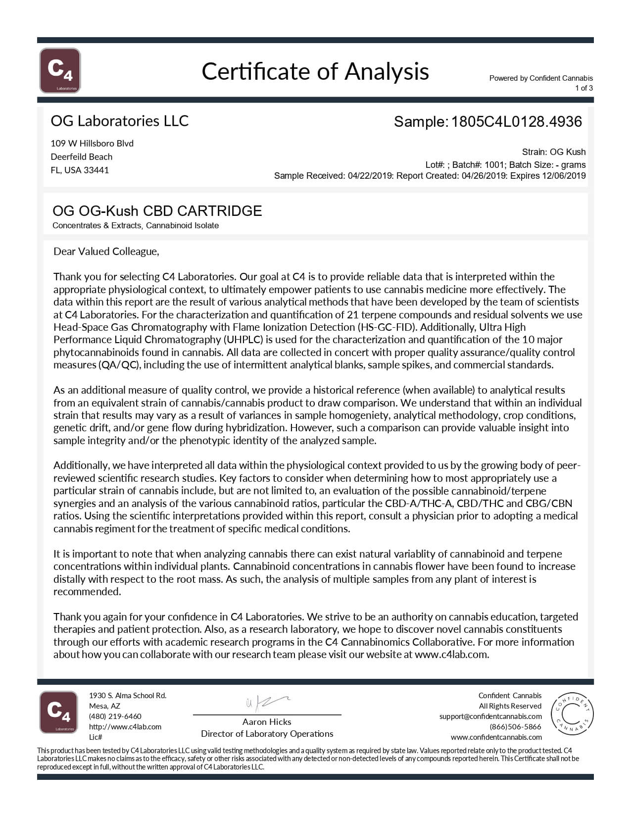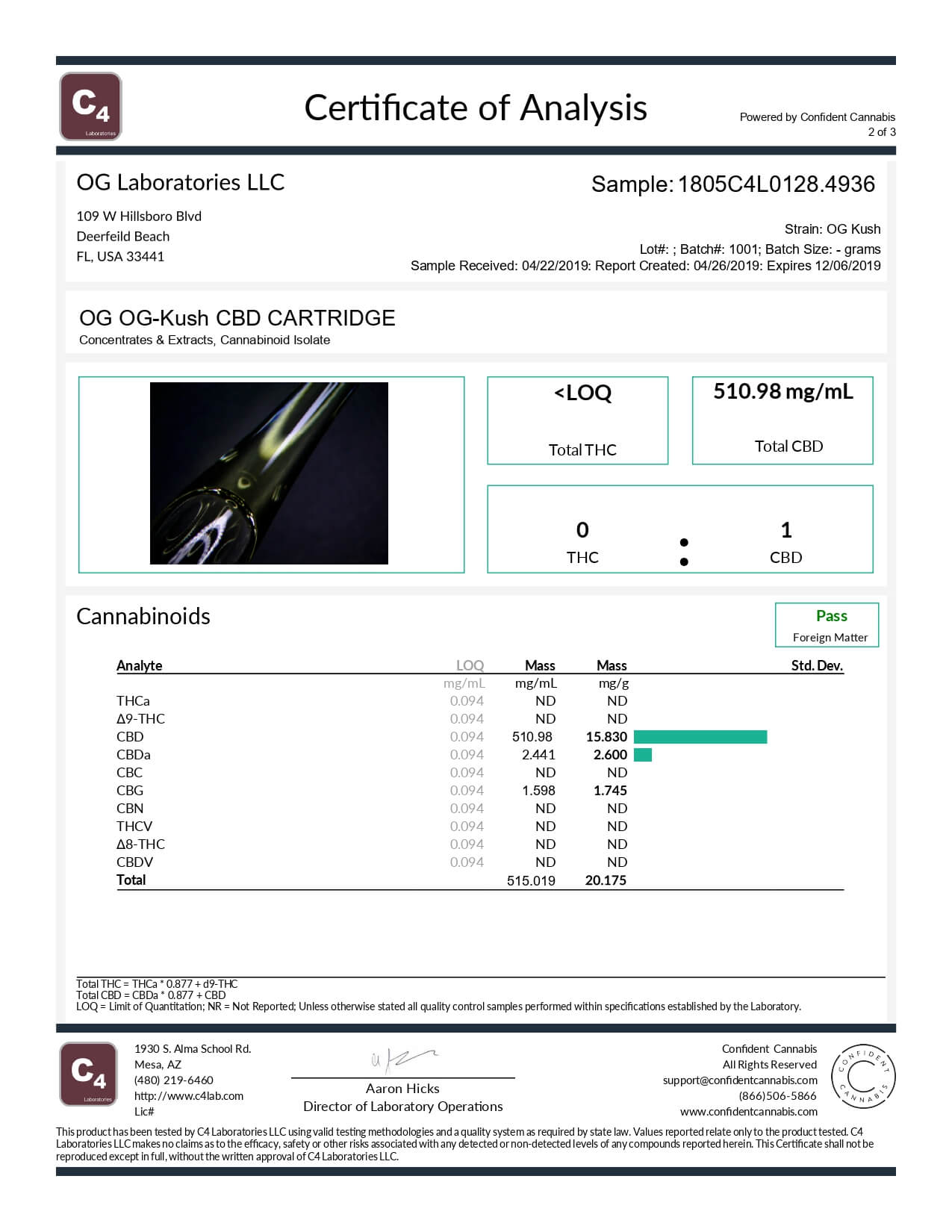 OG Labs CBD Cartridge Kush Lab Report important details about vaping products.