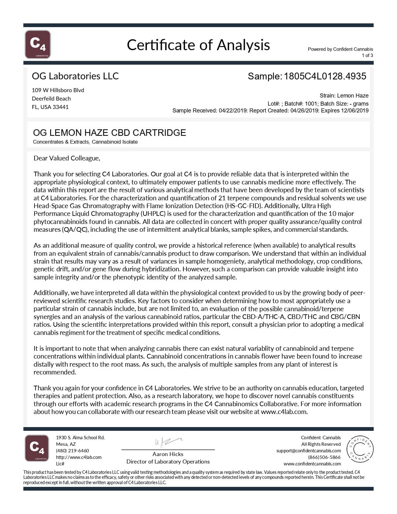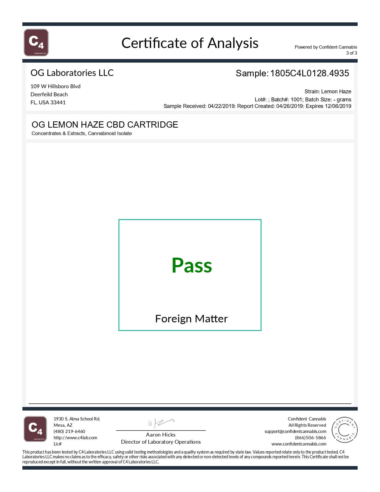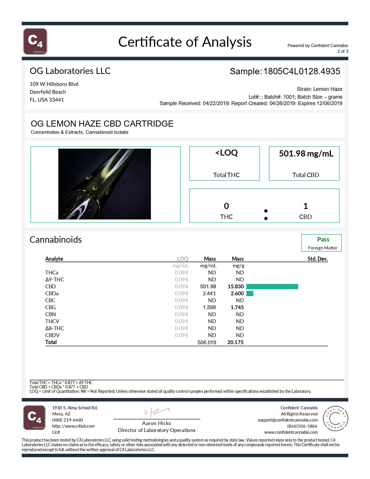 OG Labs CBD Cartridge Lemon Haze Lab Report important details about vaping products.