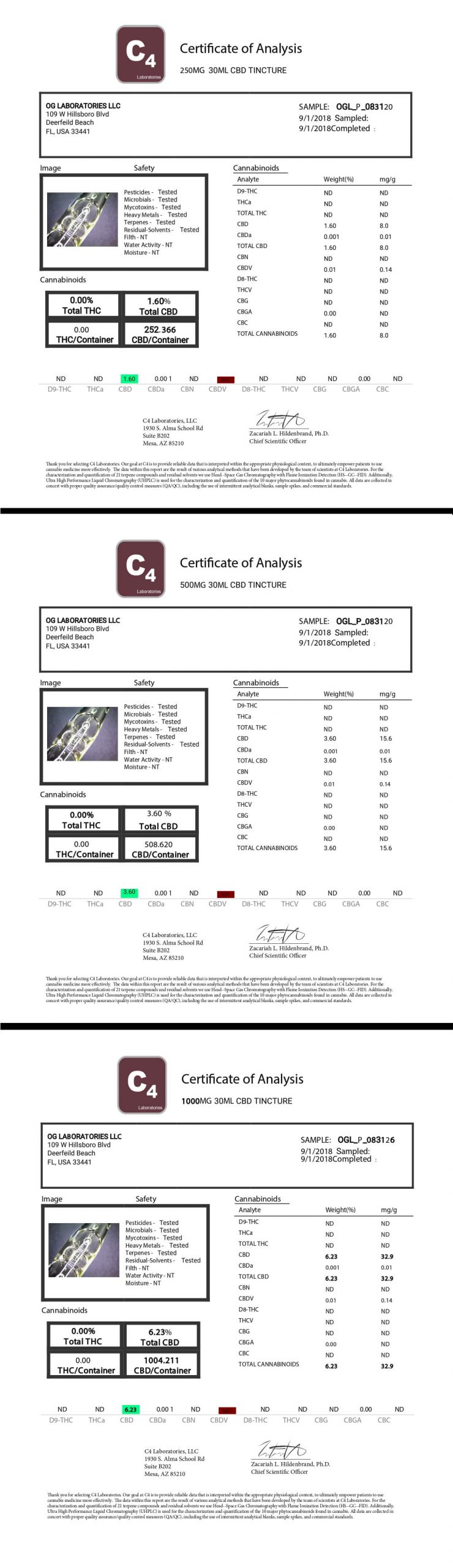 OG Labs CBD Tincture Peppermint Lab Report