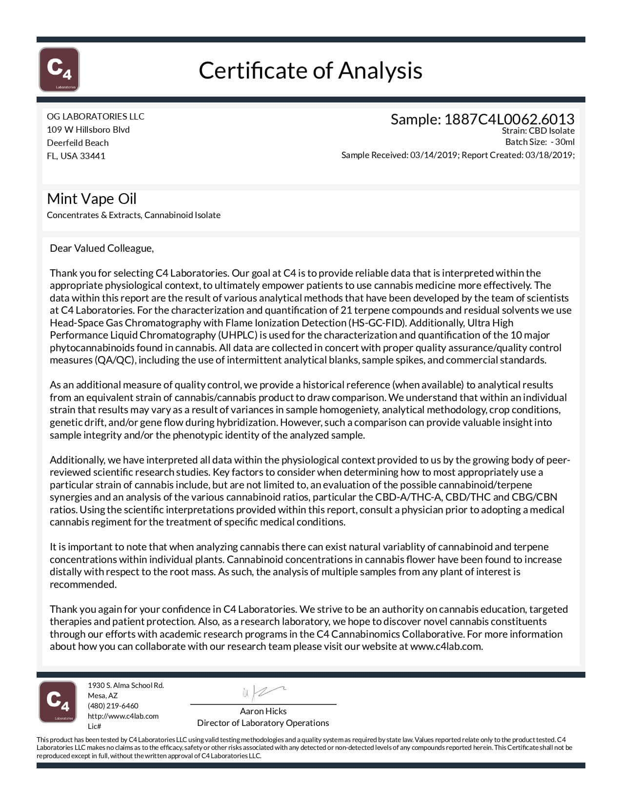 OG Labs CBD Vape Juice Mint Lab Report important details about vaping products.