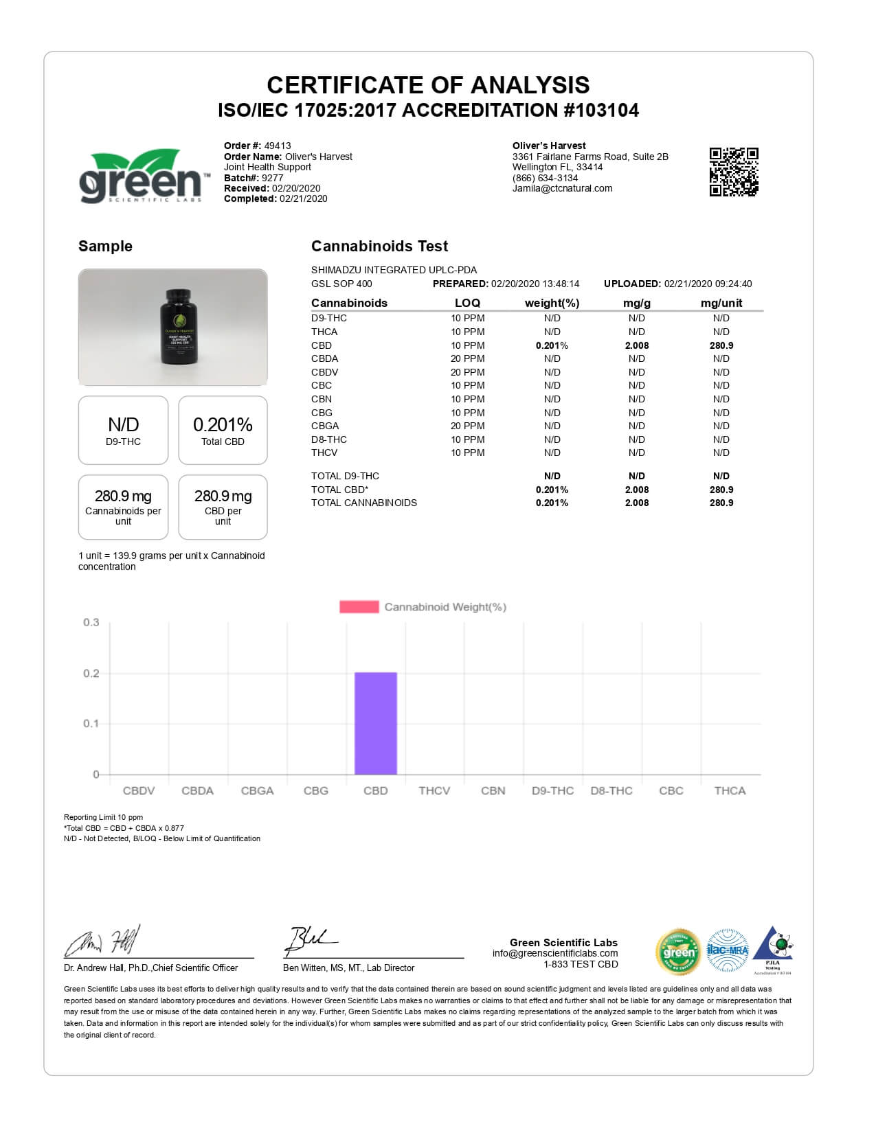 Oliver’s Harvest CBD Capsule Joint Health Tablets Lab Report important details about vaping products.