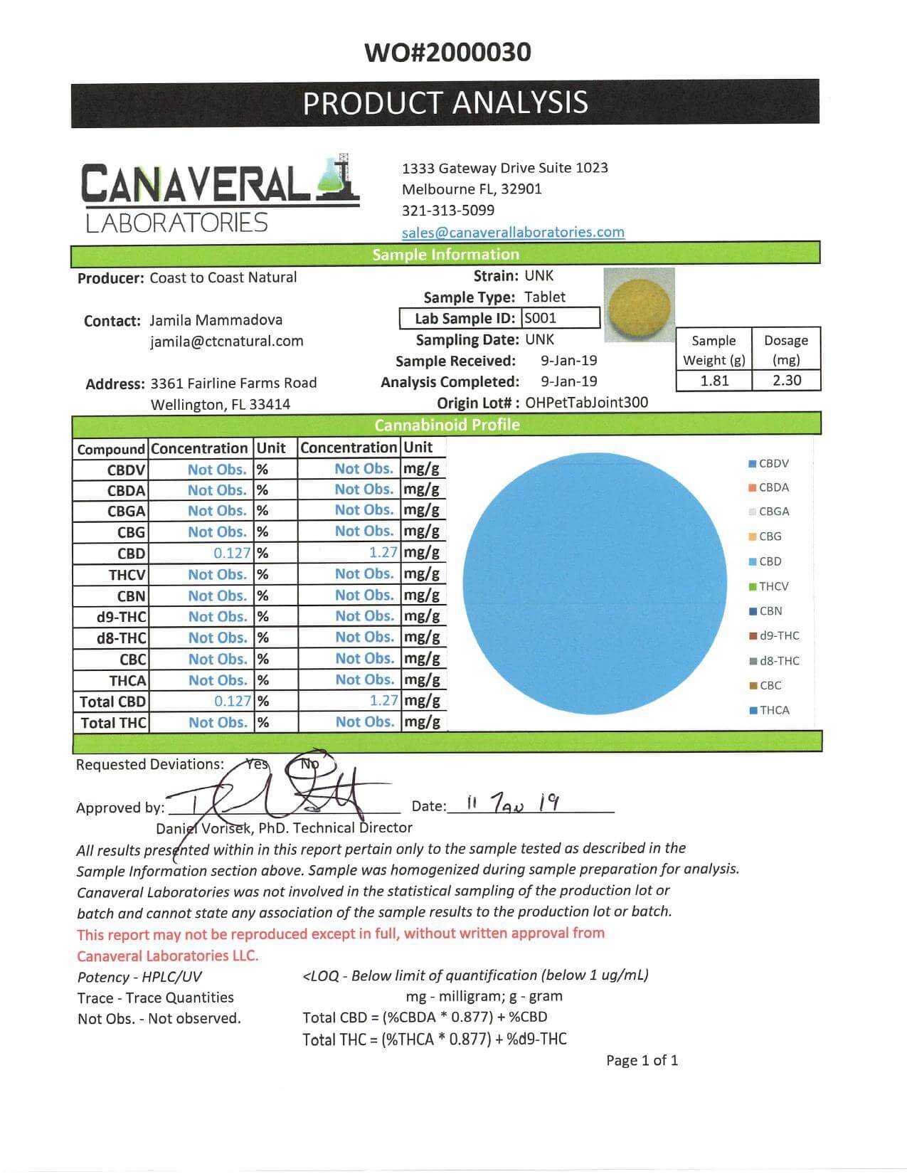 Oliver’s Harvest CBD Pet Capsule Joint Support Tablets Lab Report important details about vaping products.