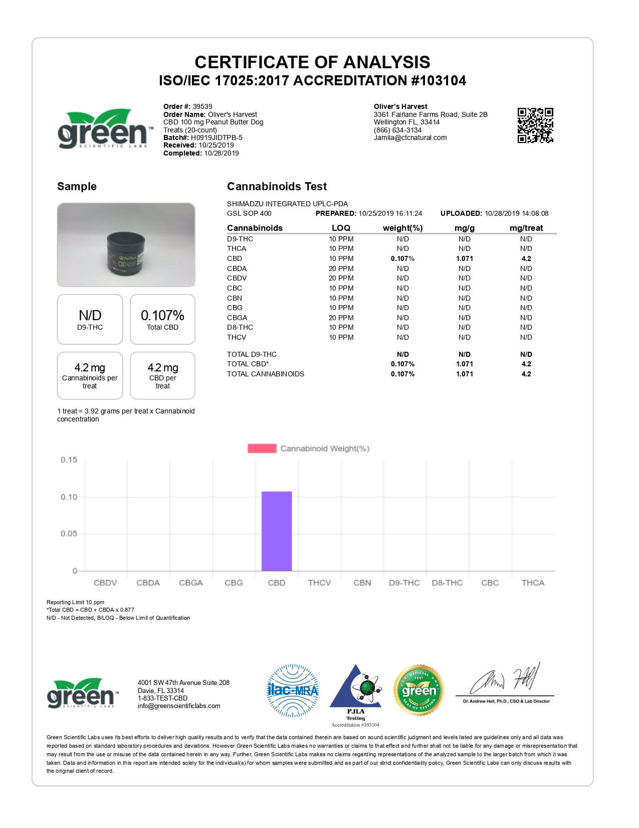 Oliver’s Harvest CBD Pet Edible Peanut Butter Treats Lab Report important details about vaping products.