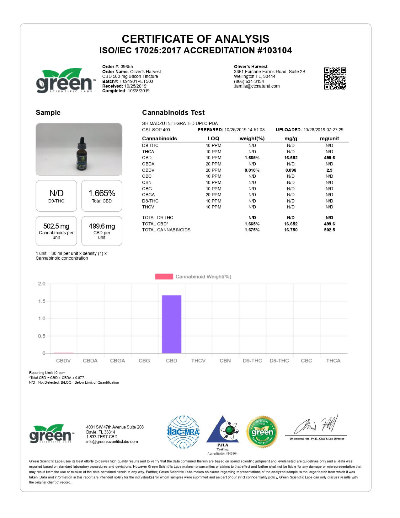 Oliver’s Harvest CBD Pet Tincture Bacon Flavored Oil Lab Report important details about vaping products.