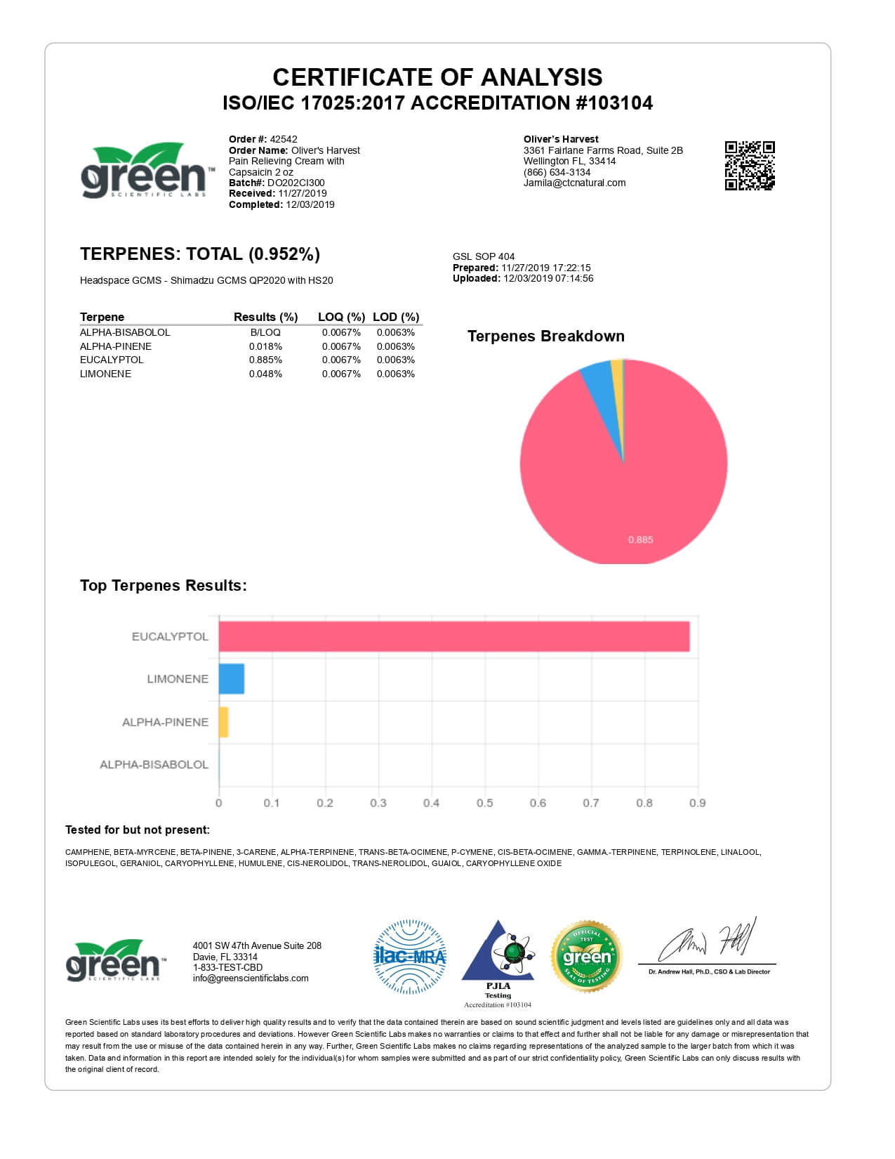 Oliver’s Harvest CBD Topical Capsaicin Pain Cream Lab Report important details about vaping products.