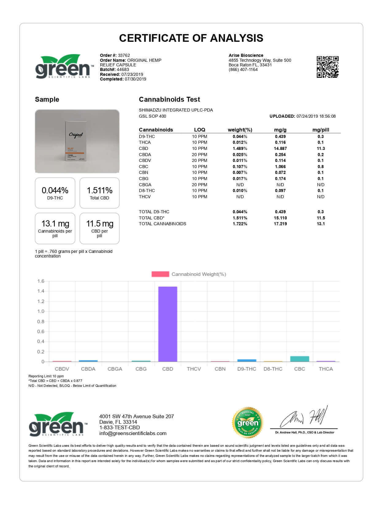 Original Hemp CBD Capsule Relief Lab Report