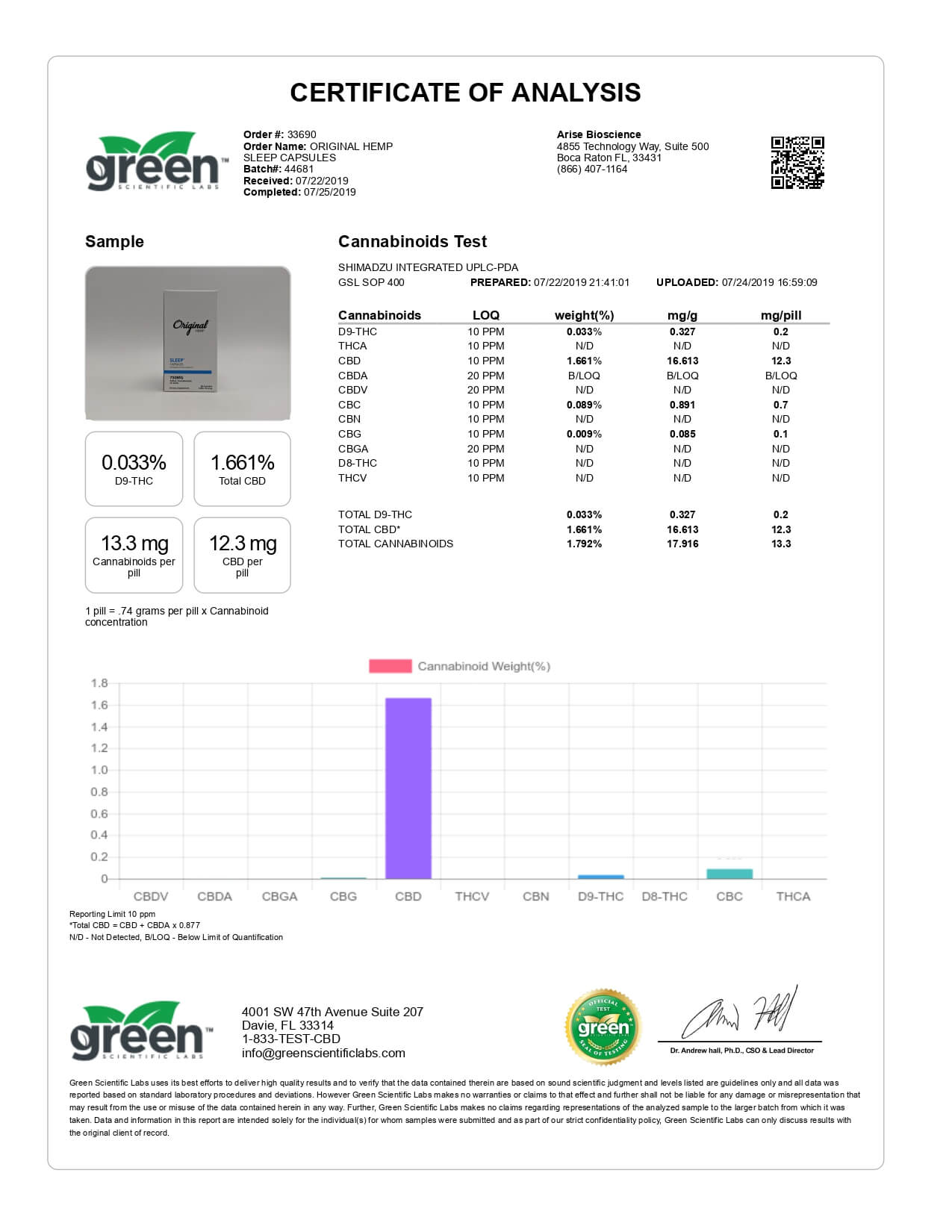 Original Hemp CBD Capsule Sleep Melatonin 750mg Lab Report