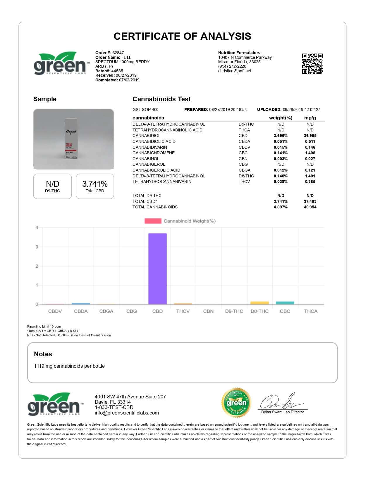Original Hemp CBD Tincture Fresh Berry Lab Report important details about vaping products.
