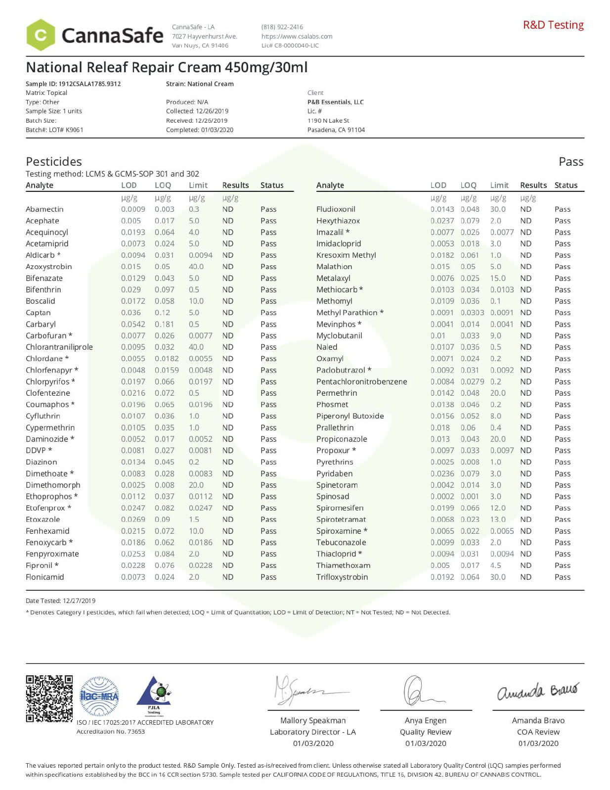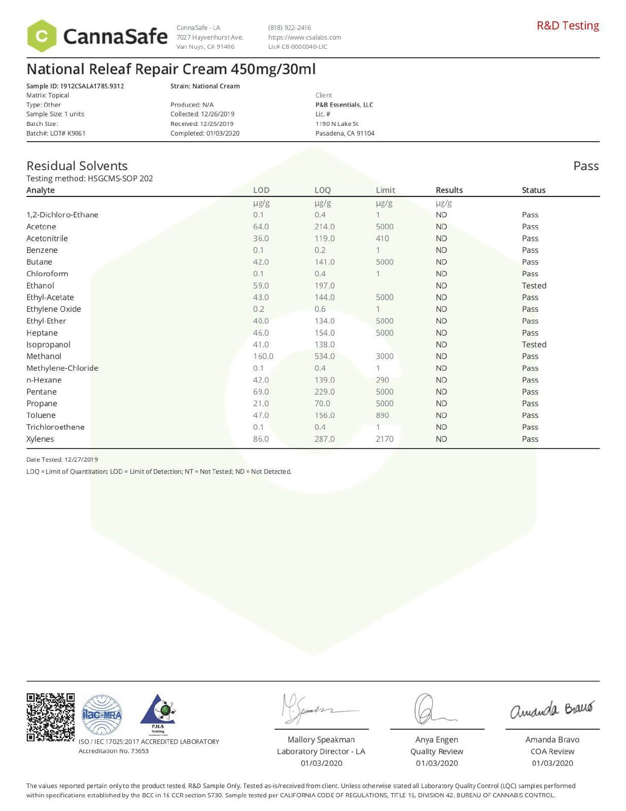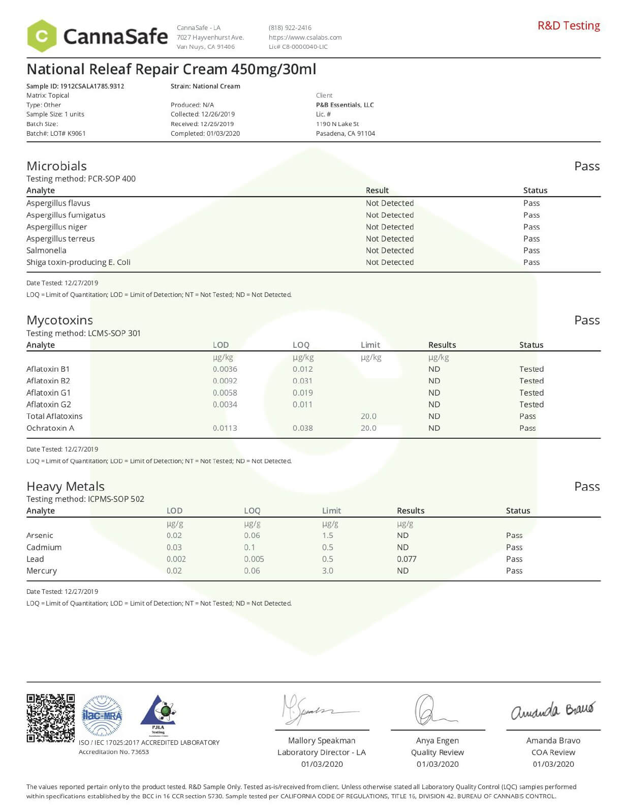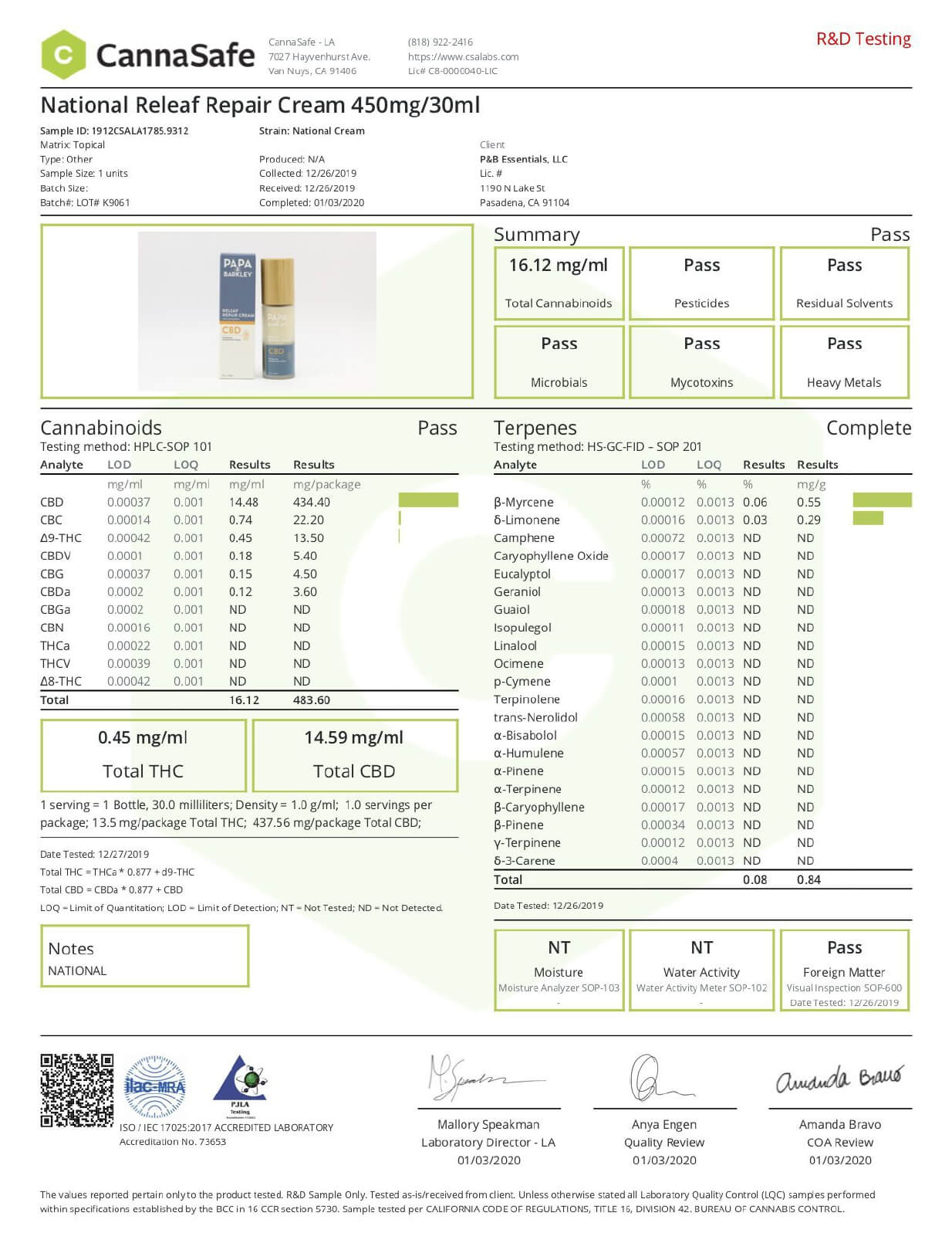 Papa & Barkley CBD Topical Releaf Repair Cream Lab Report