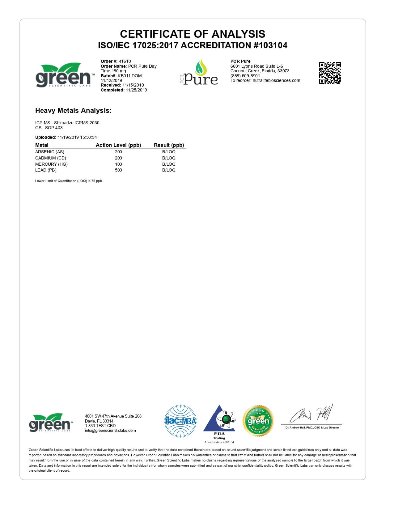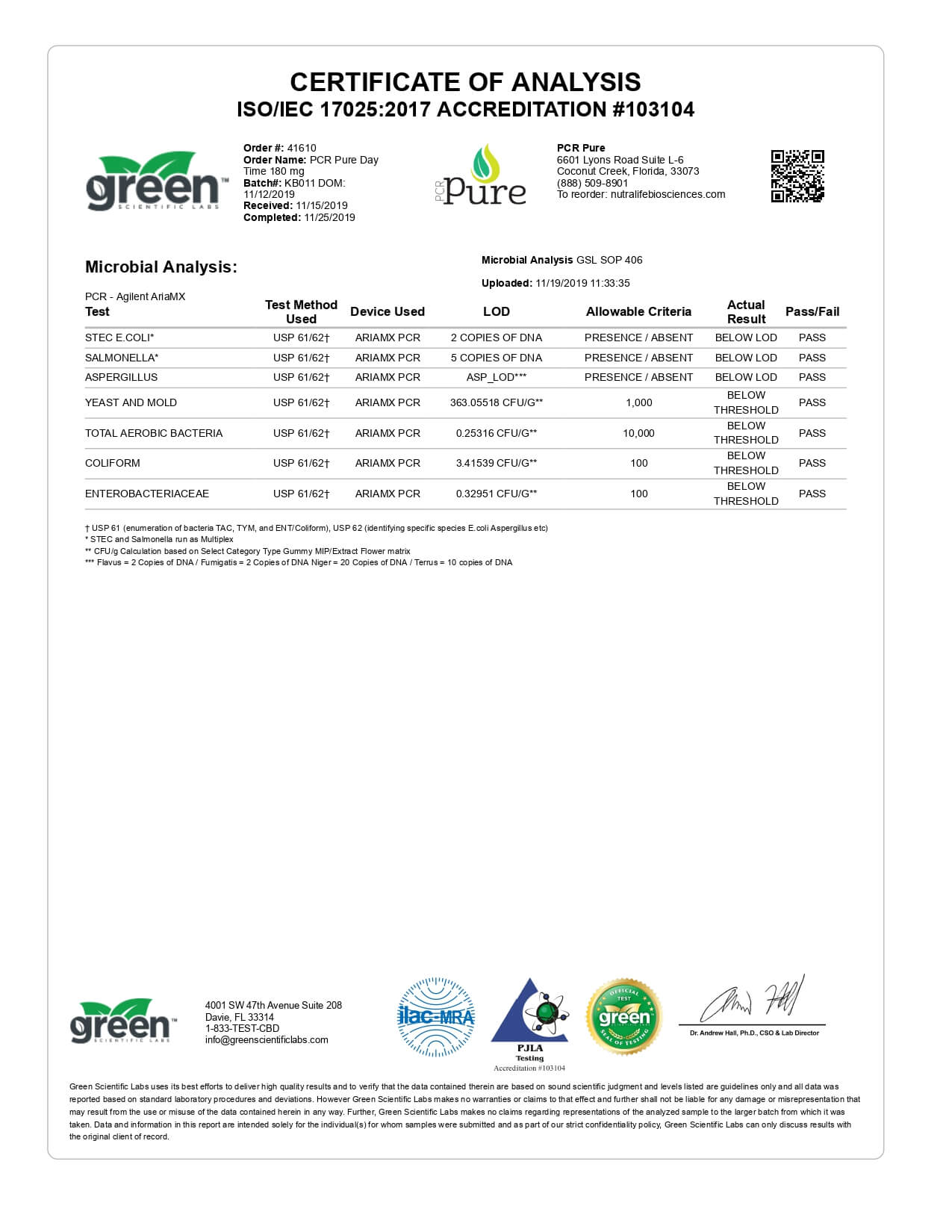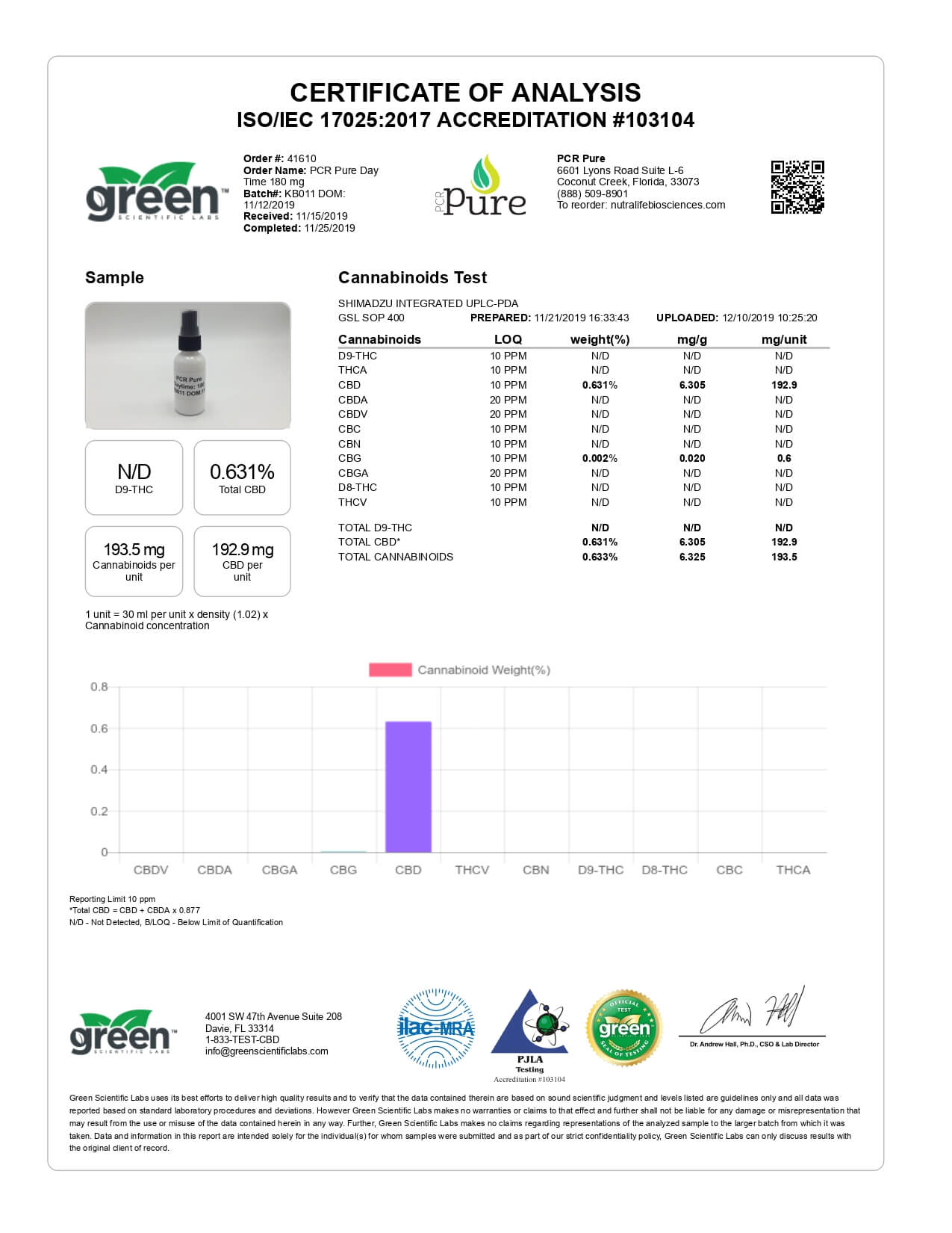 PCR Pure CBD Tincture Spray Full Spectrum Daytime Formula Lab Report important details about vaping products.