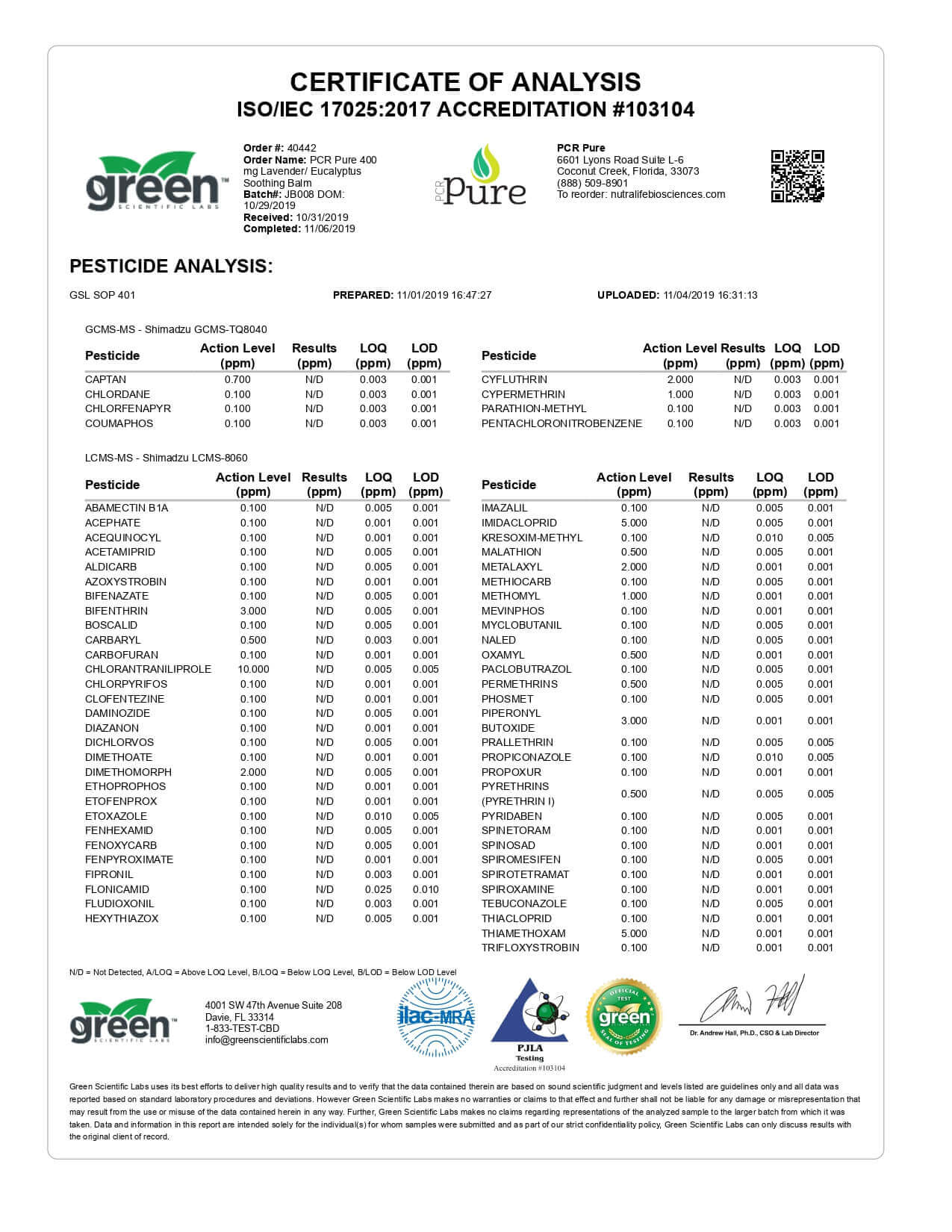 PCR Pure CBD Topical Lavender & Eycalyptus Full Spectrum Soothing Balm Lab Report important details about vaping products.