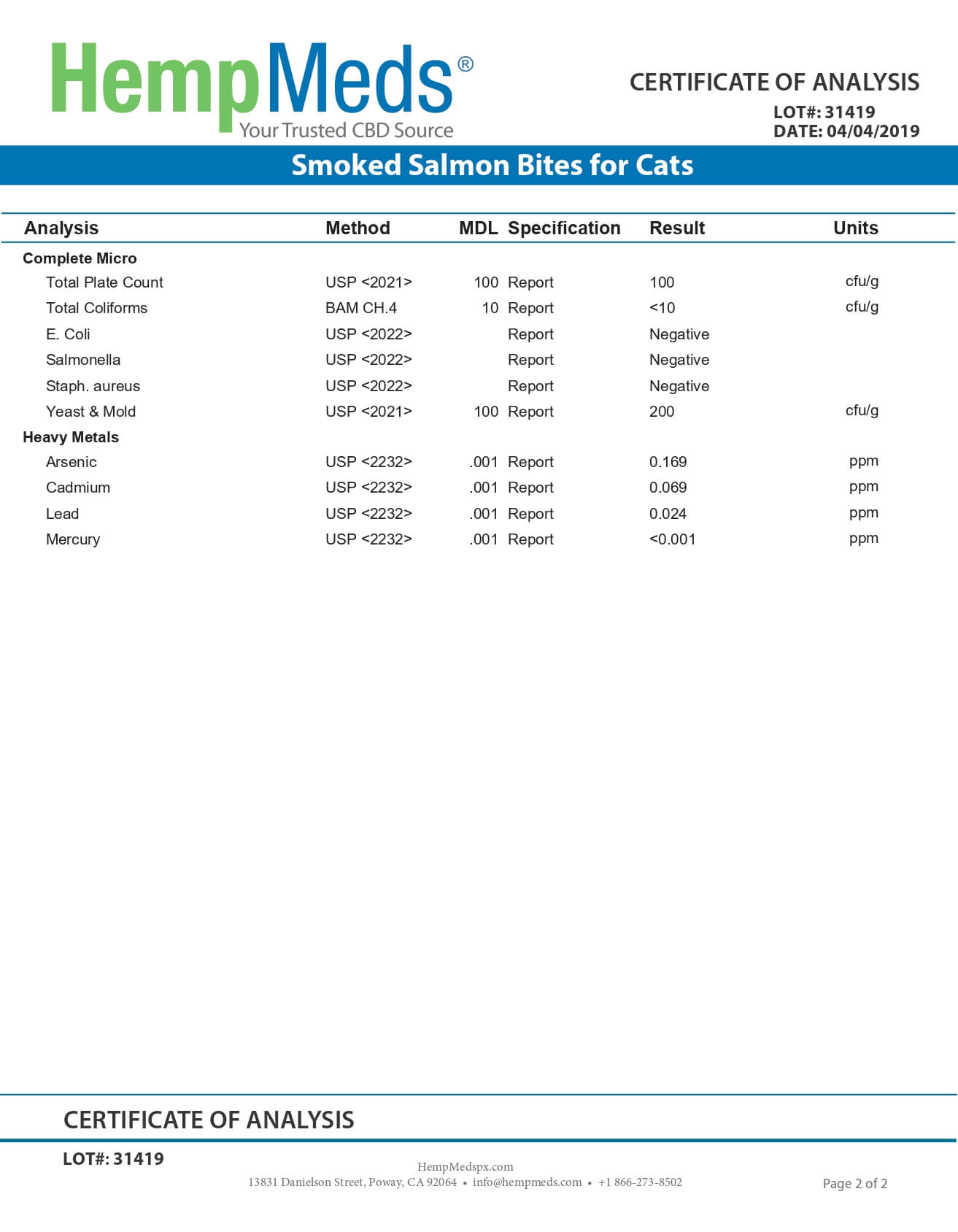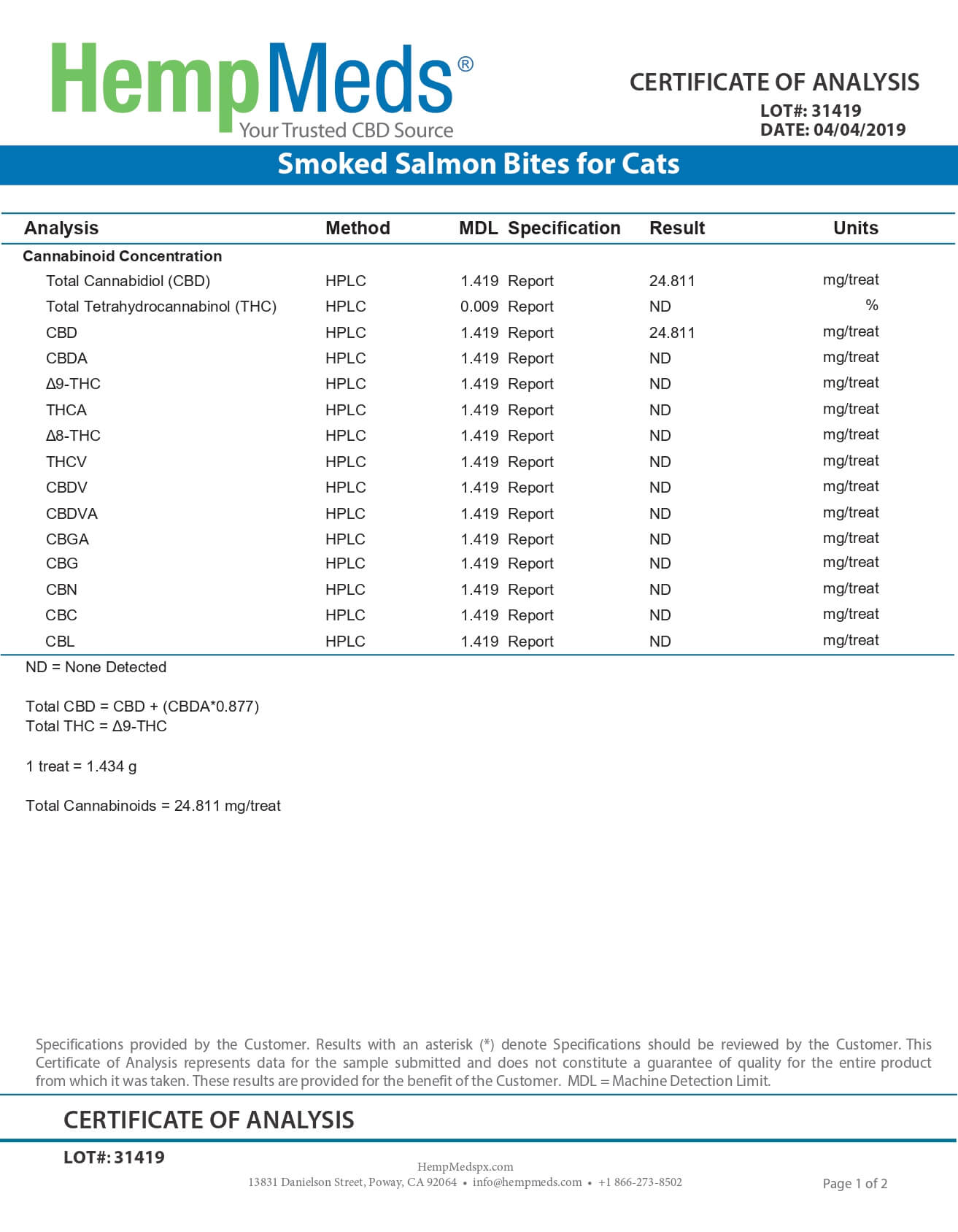 PHYTO Animal Health™ CBD Pet Edible HempBones Salmon Cat Bites Lab Report important details about vaping products.