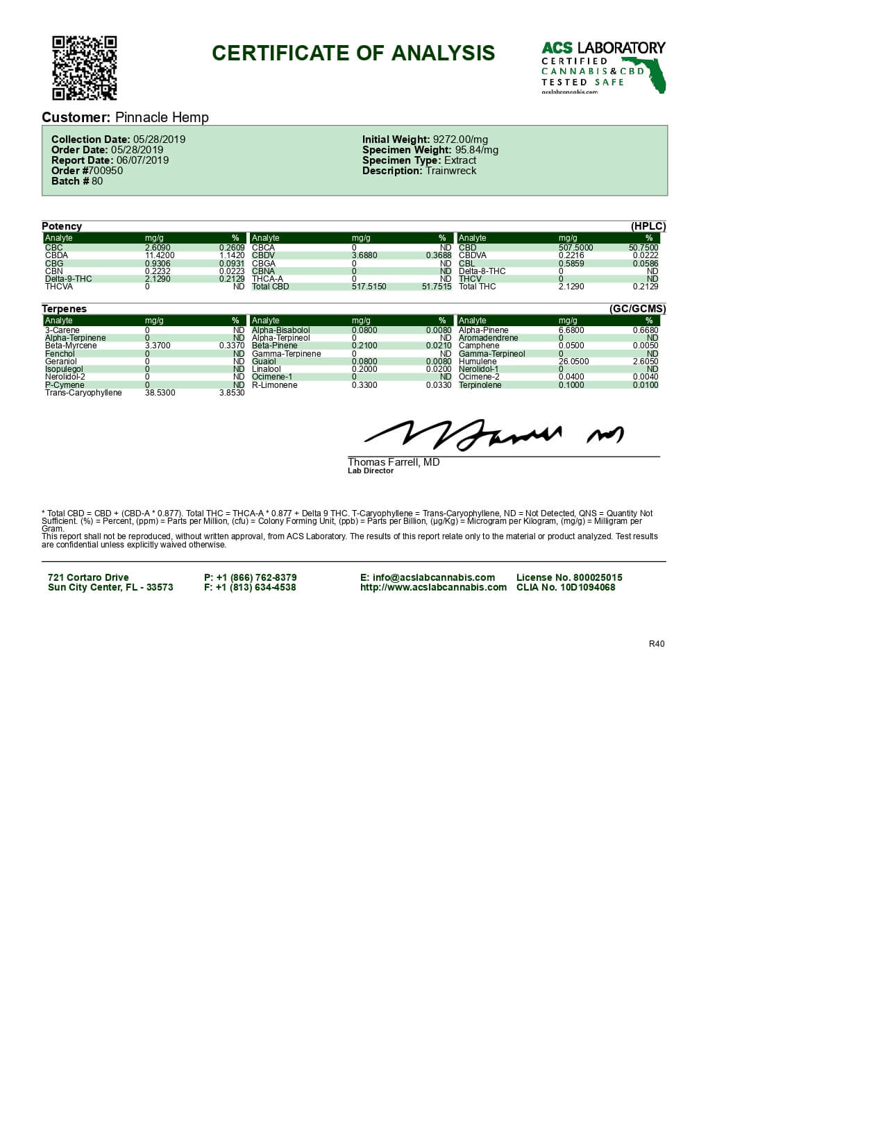 Pinnacle Hemp CBD Cartridge Full Spectrum Trainwreck Lab Report important details about vaping products.