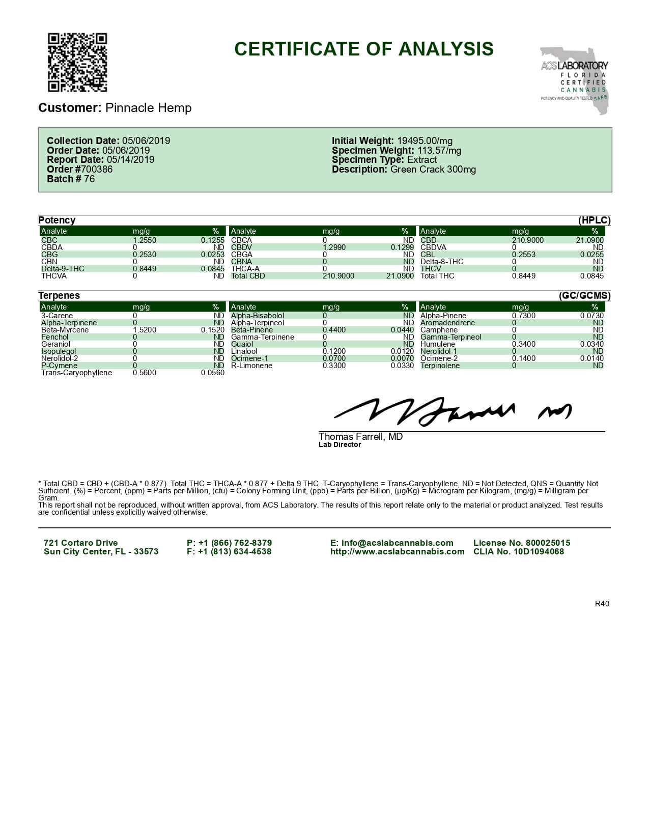 Pinnacle Hemp CBD Cartridge Green Crack Ki Pod Lab Report important details about vaping products.