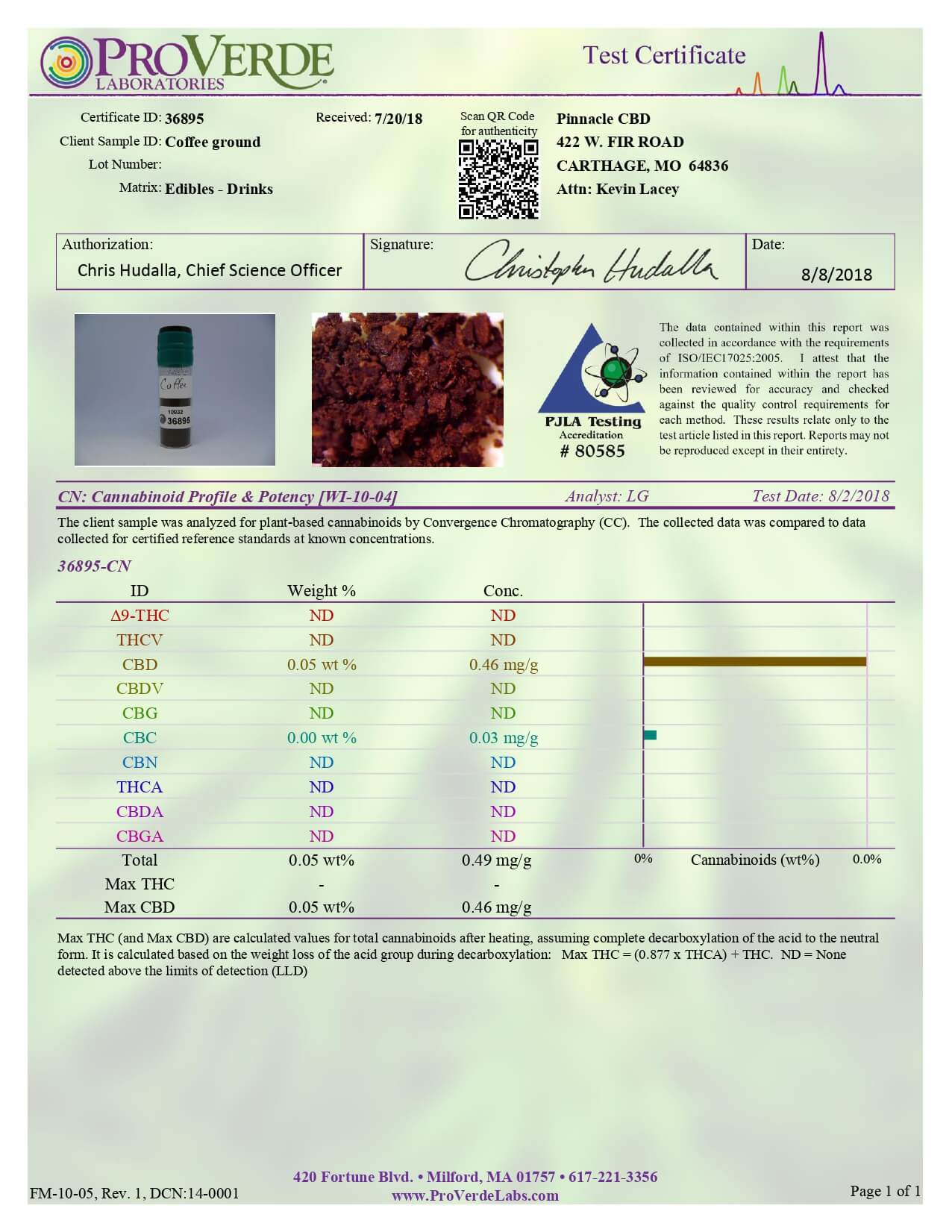 Pinnacle Hemp CBD Coffee Full Spectrum Ground Coffee Lab Report important details about vaping products.