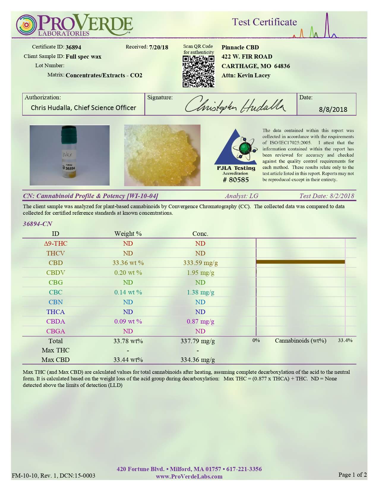 Pinnacle Hemp CBD Concentrate Full Spectrum Crumble Lab Report important details about vaping products.