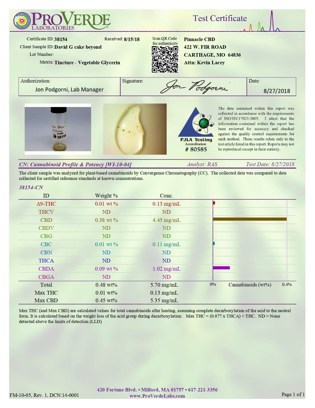 Pinnacle Hemp CBD Vape David G Cake Beyond Dreams Lab Report important details about vaping products.