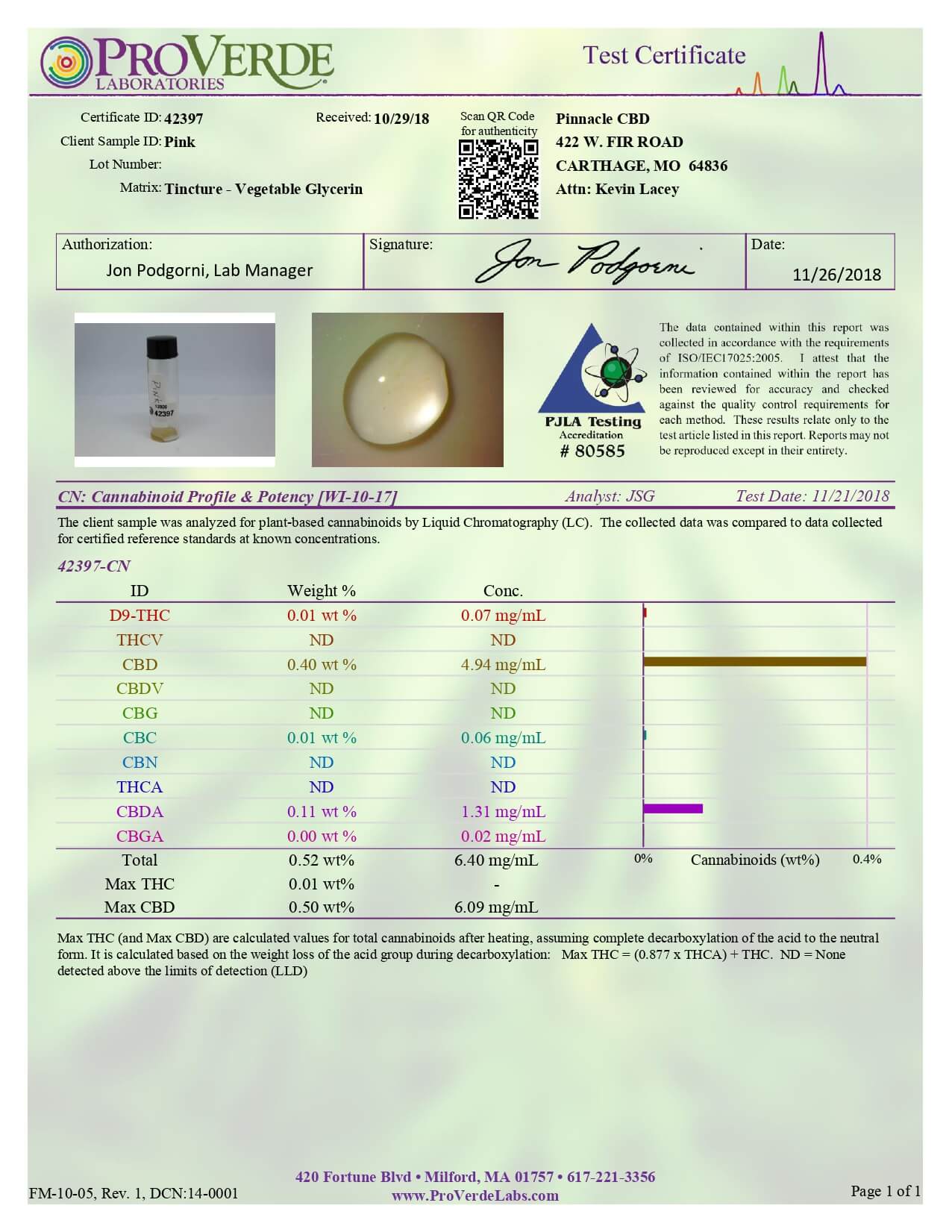 Pinnacle Hemp CBD Vape Ends Game Pink Lab Report important details about vaping products.