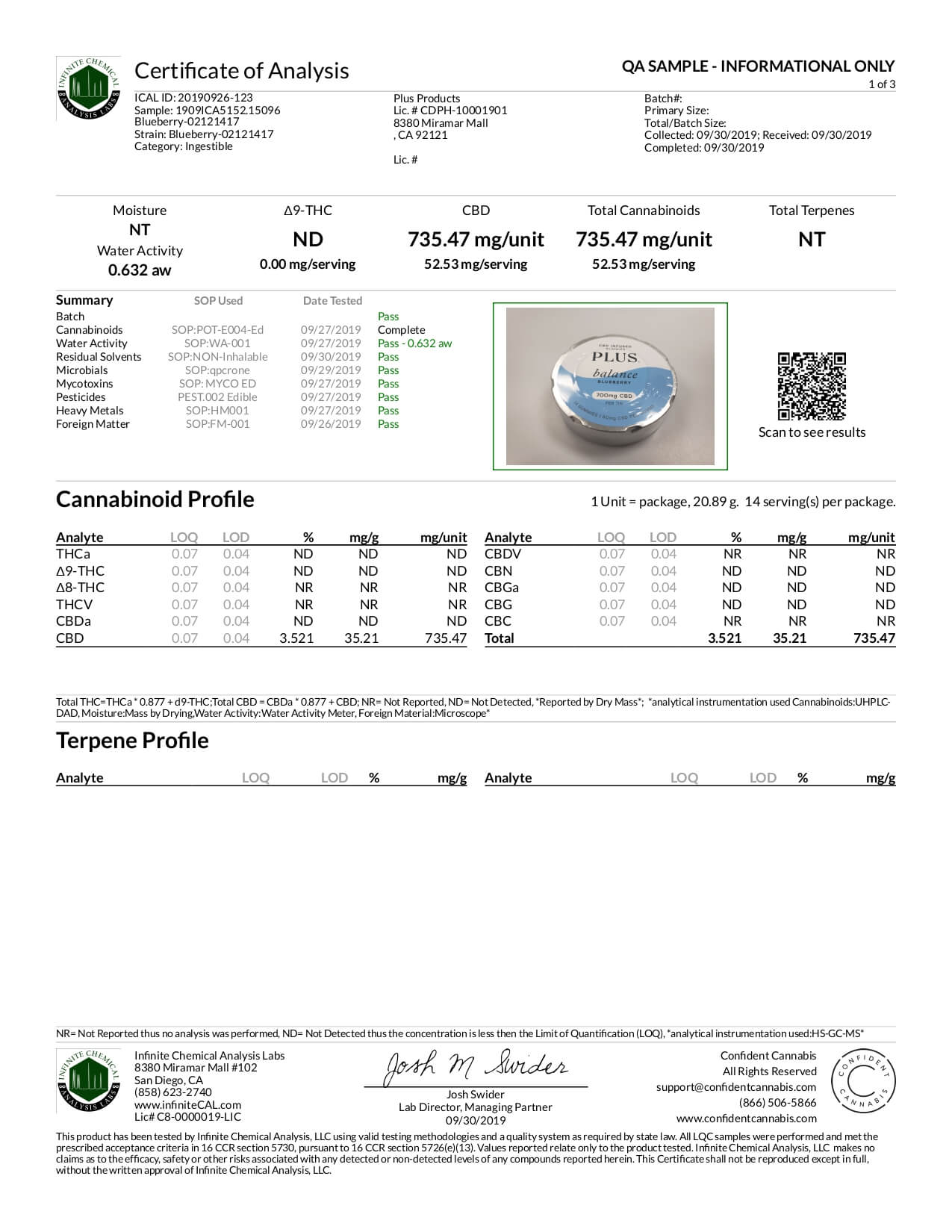 Plus CBD Edible Balance Blueberry Gummies Lab Report