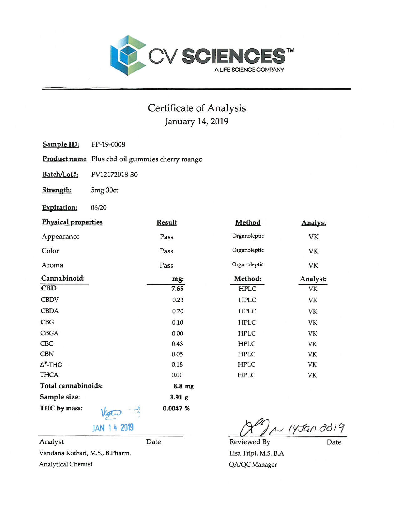 PlusCBD Oil CBD Edible Cherry Mango Gummies Lab Report important details about vaping products.