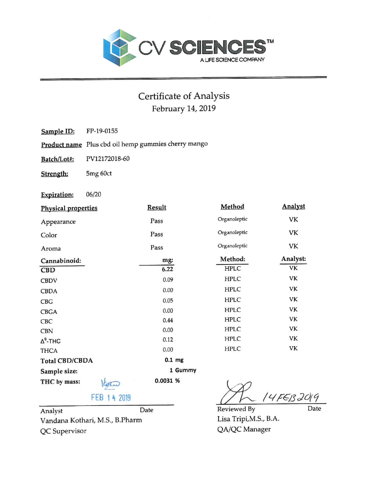 PlusCBD Oil CBD Edible Cherry Mango Gummies Lab Report