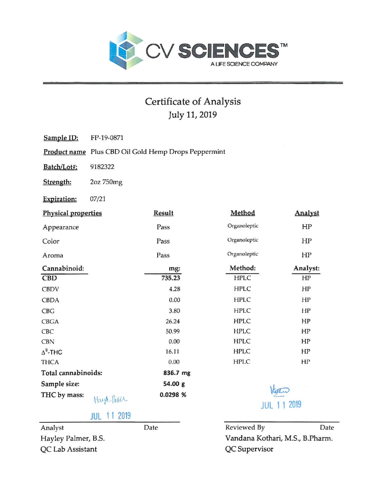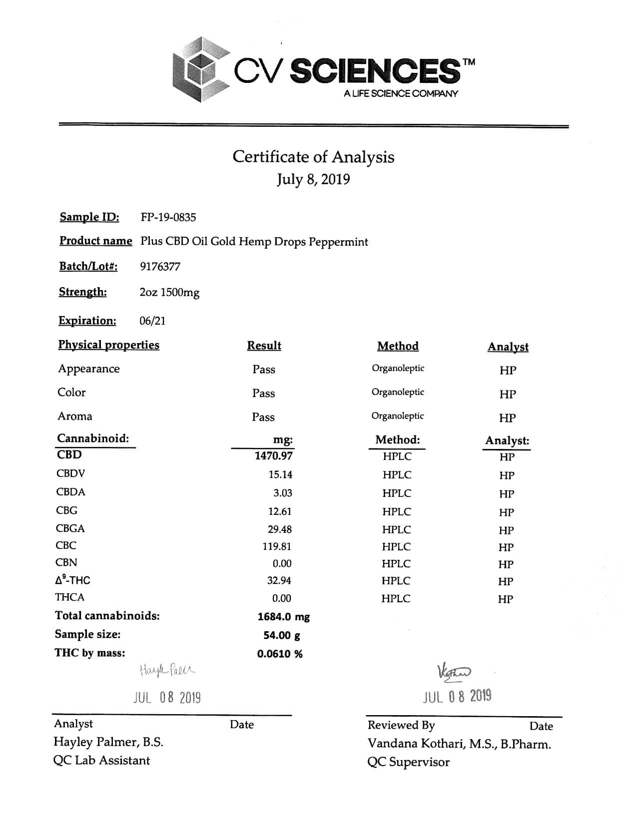 PlusCBD Oil CBD Tincture Gold Drops Peppermint Lab Report important details about vaping products.