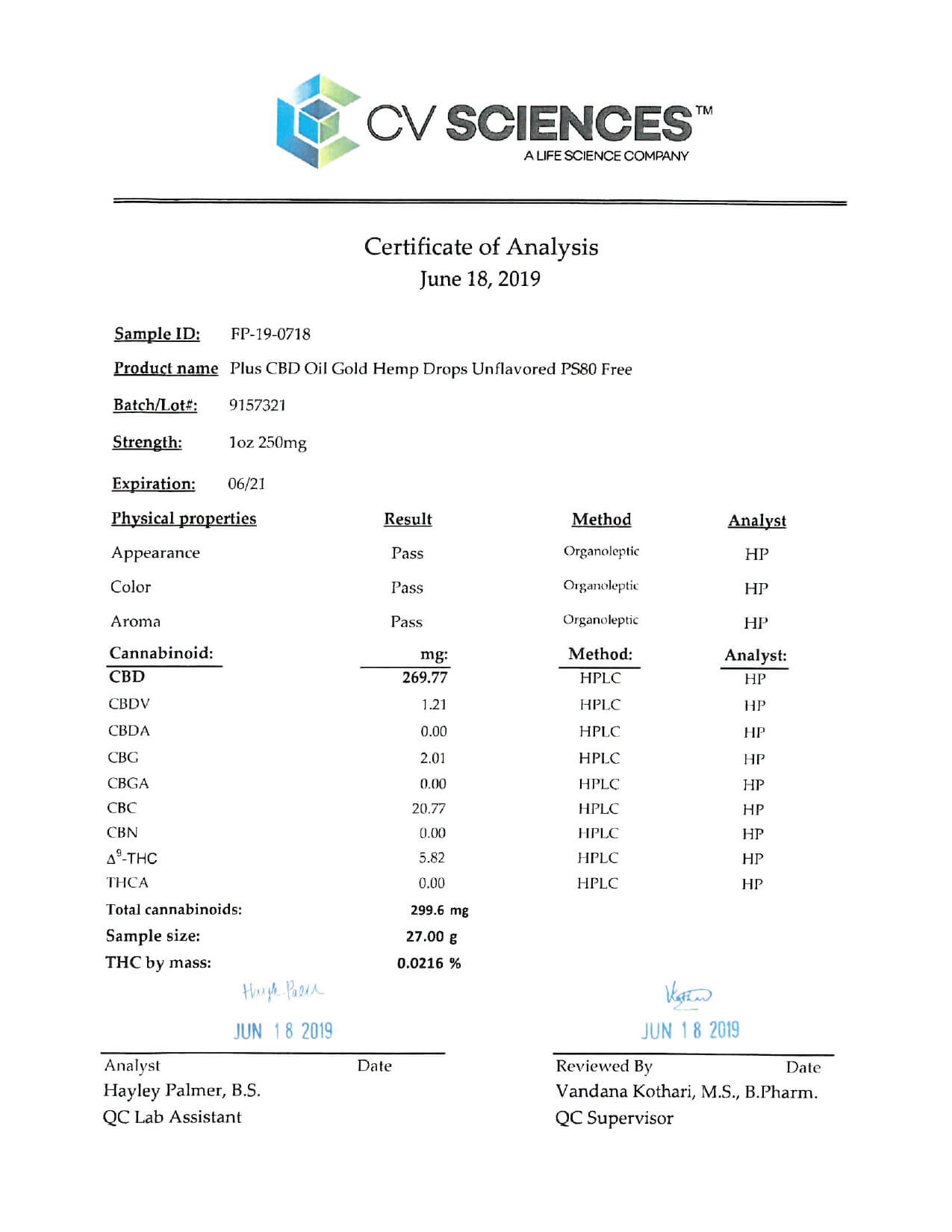 PlusCBD Oil CBD Tincture Gold Drops Unflavored Lab Report important details about vaping products.