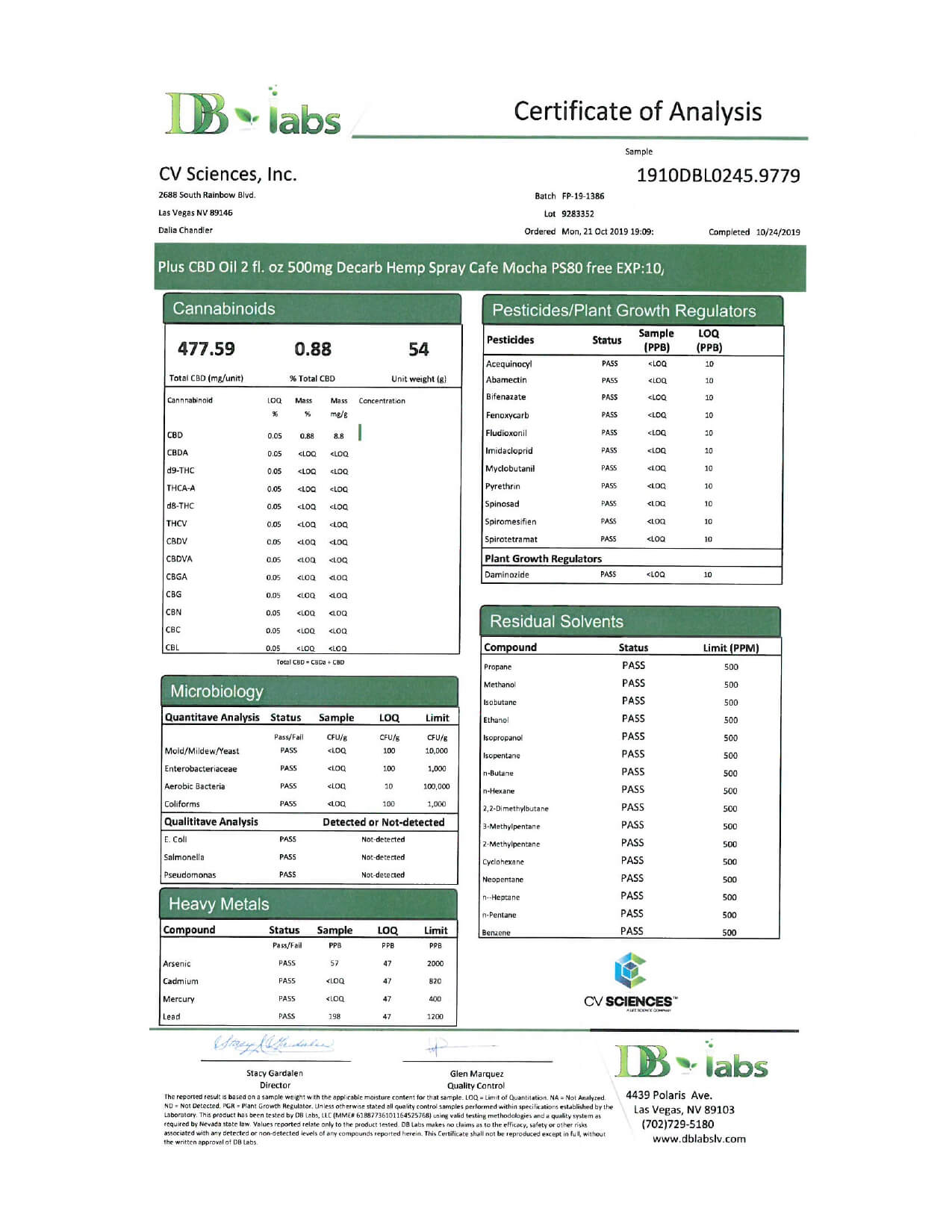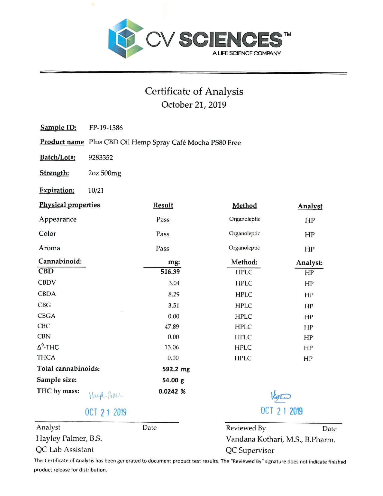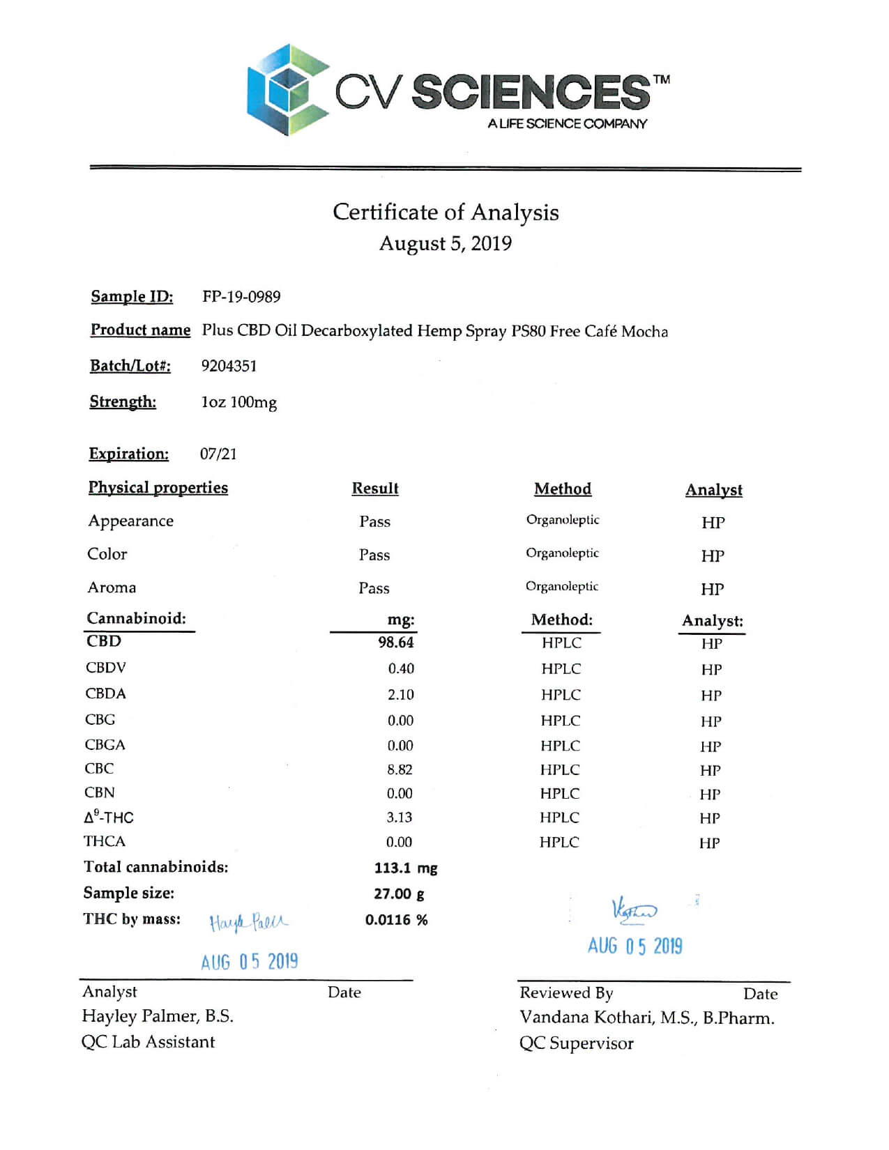 PlusCBD Oil CBD Tincture Spray EVOO Cafe Mocha Lab Report important details about vaping products.