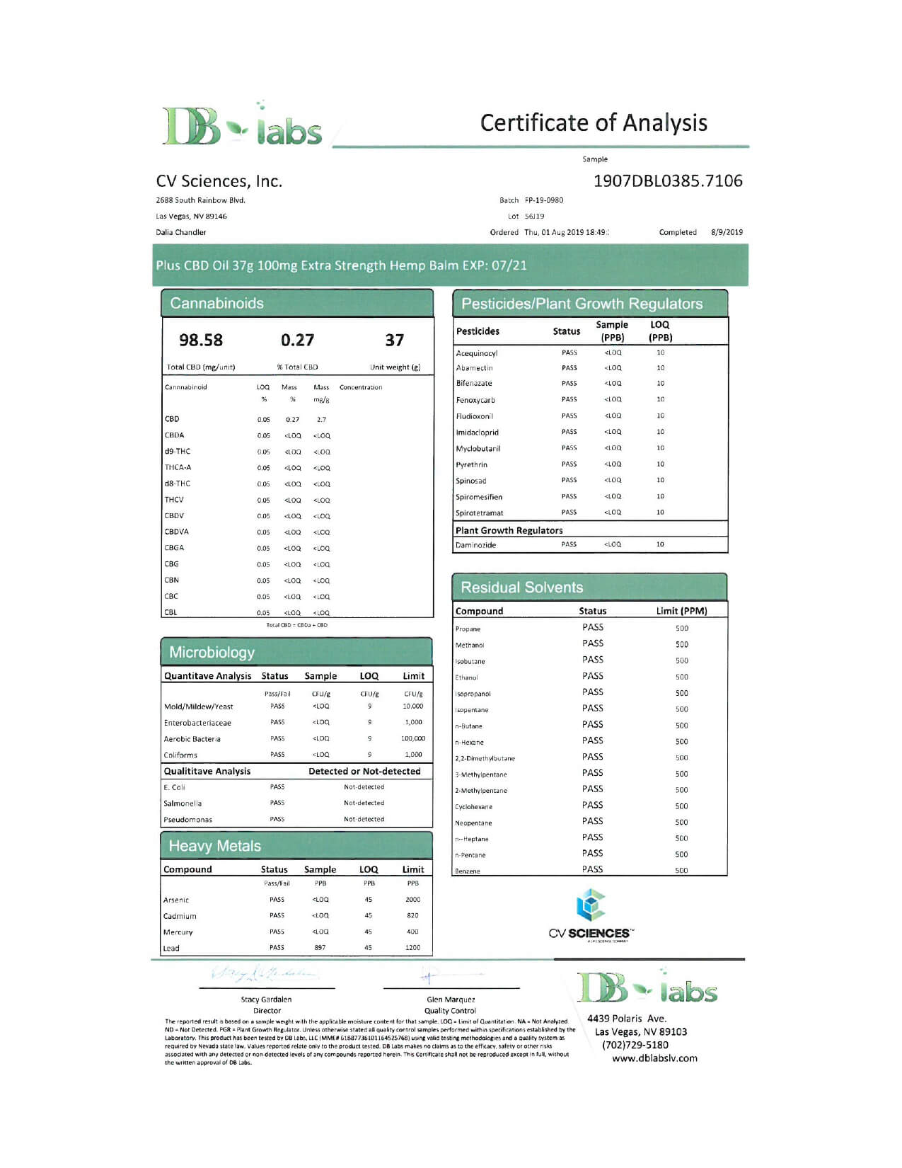 PlusCBD Oil CBD Topical Extra Strength Gold Balm Lab Report important details about vaping products.