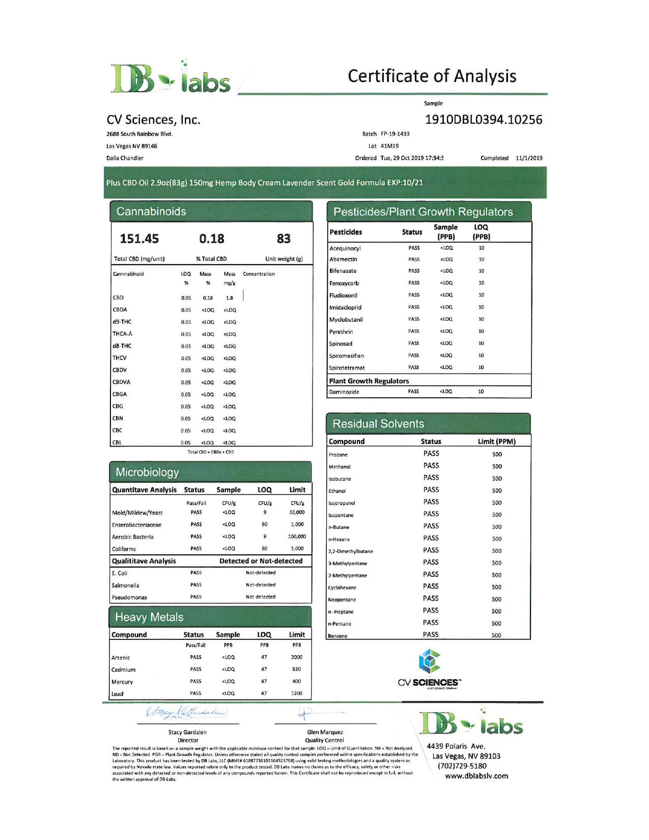 PlusCBD Oil CBD Topical Gold Body Cream Lavender Lab Report important details about vaping products.