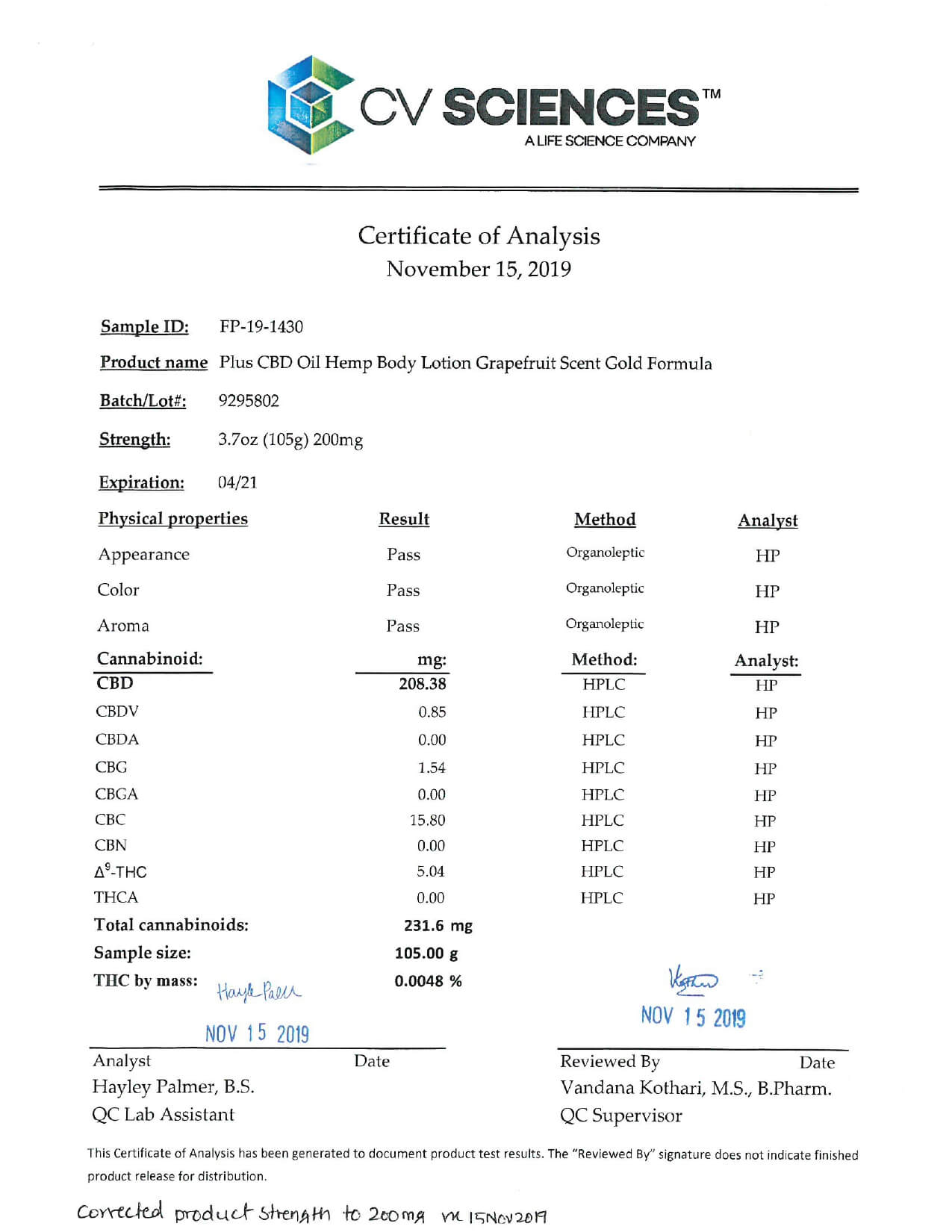 PlusCBD Oil CBD Topical Gold Body Lotion Grapefruit Lab Report important details about vaping products.