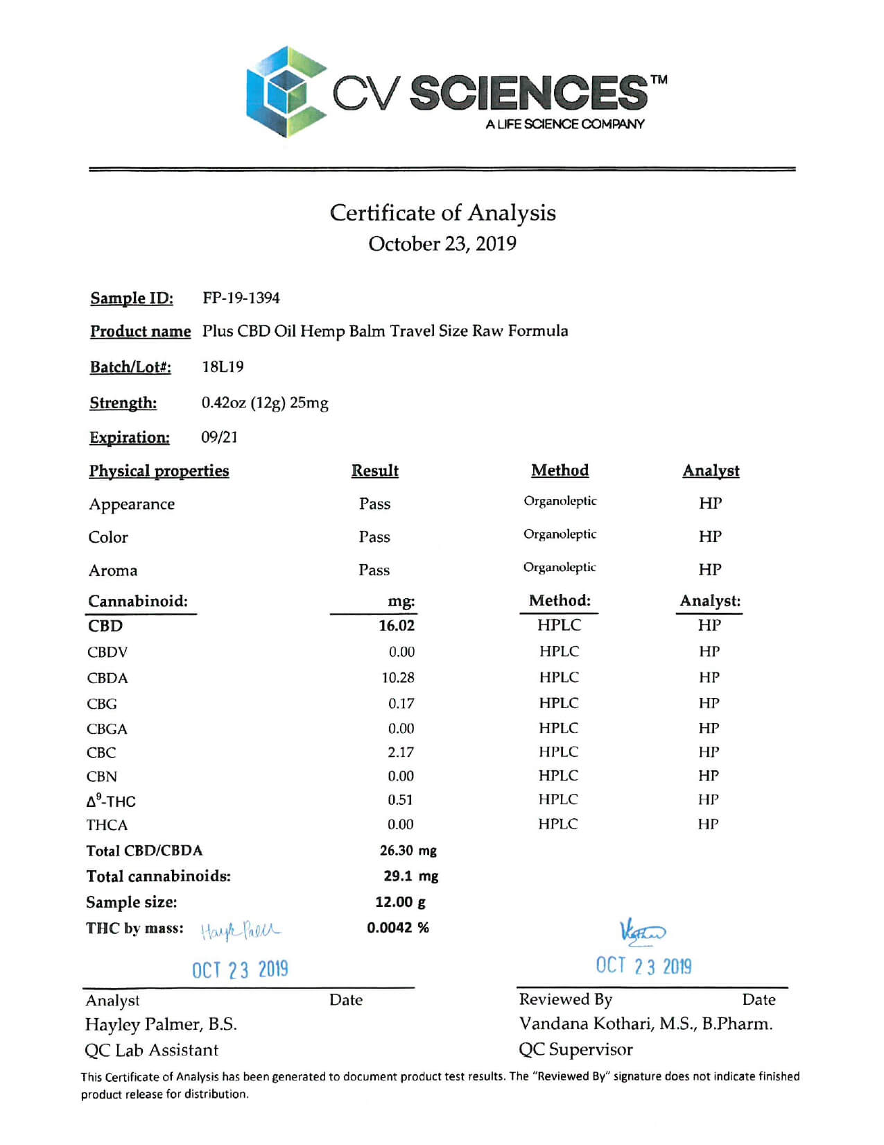 PlusCBD Oil CBD Topical Raw Travel Sized Balm Stick Lab Report important details about vaping products.