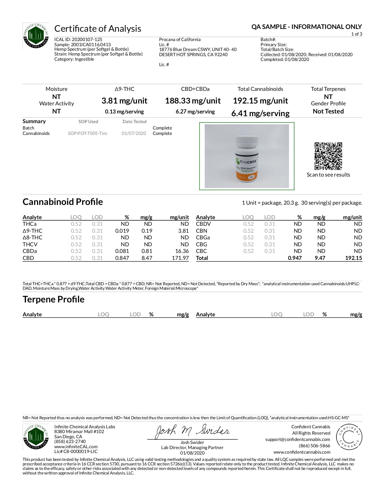 Procana CBD Hemp Spectrum Softgels Lab Report