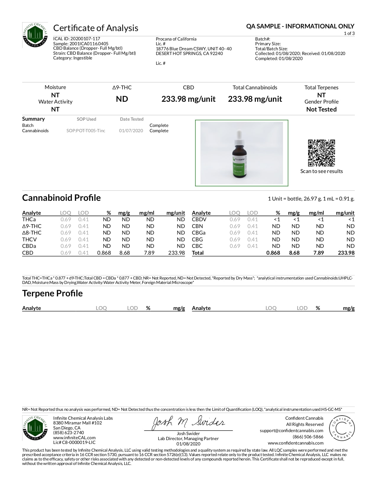 Procana CBD Tincture Balance Lab Report