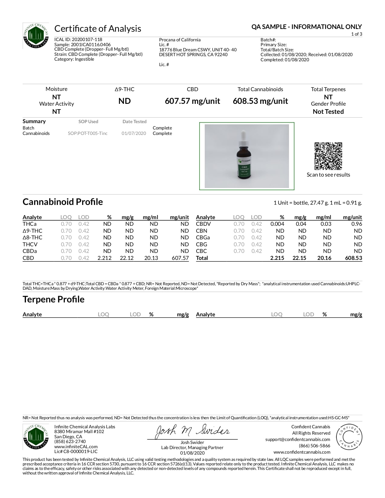 Procana CBD Tincture Complete Lab Report