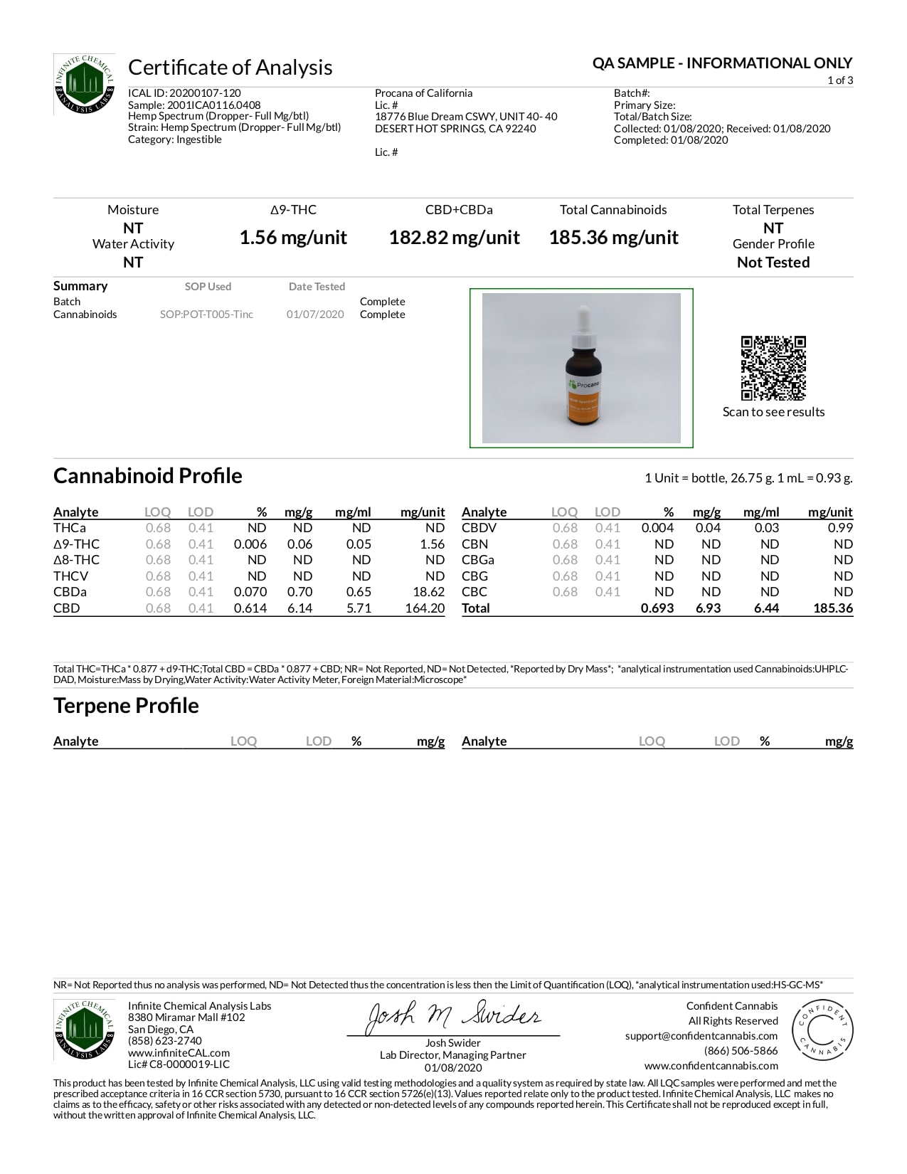 Procana Hemp Spectrum Tincture Lab Report 1500mg