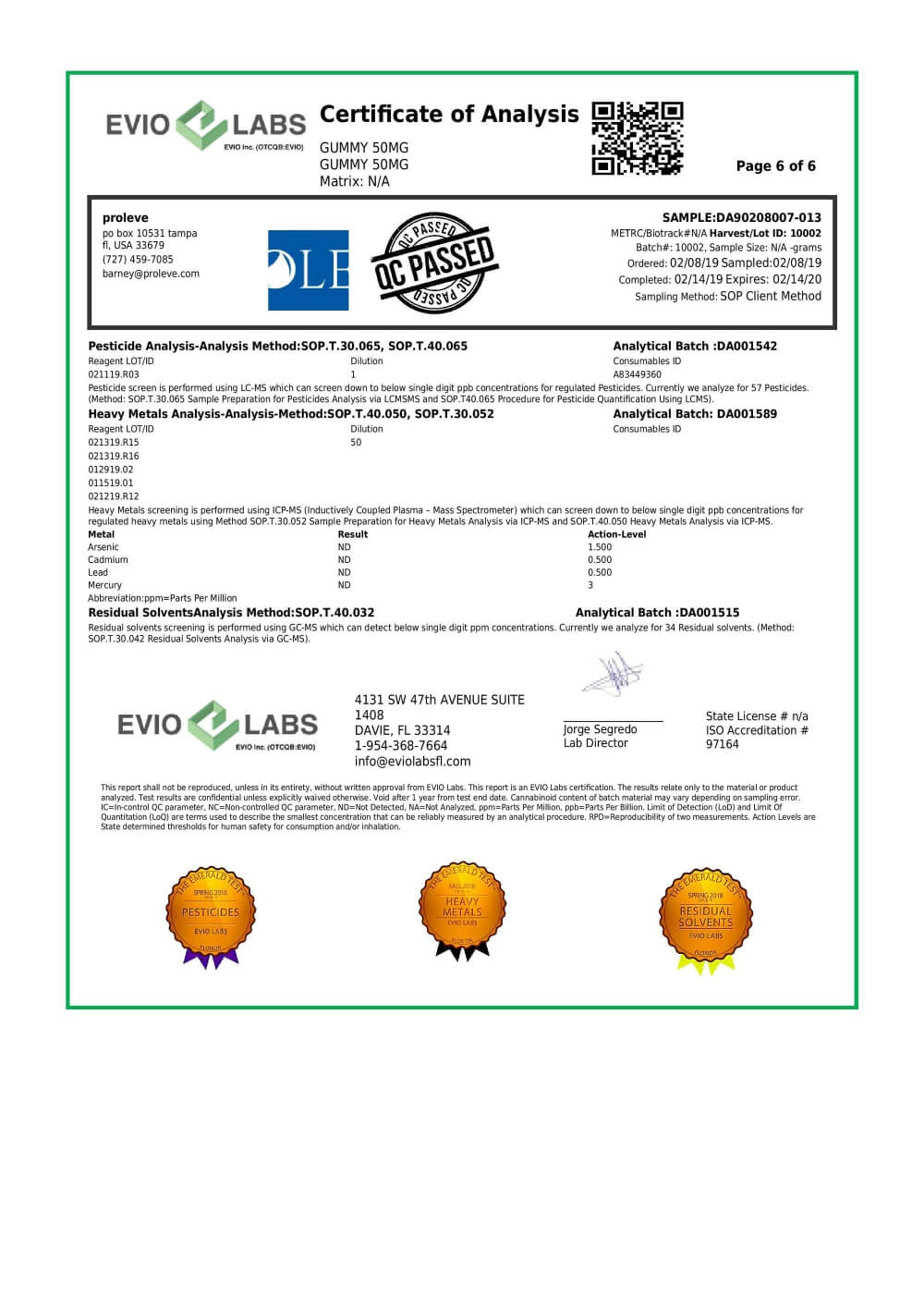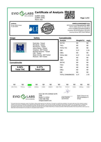 Proleve CBD Edible Gummy Slices Lab Report important details about vaping products.