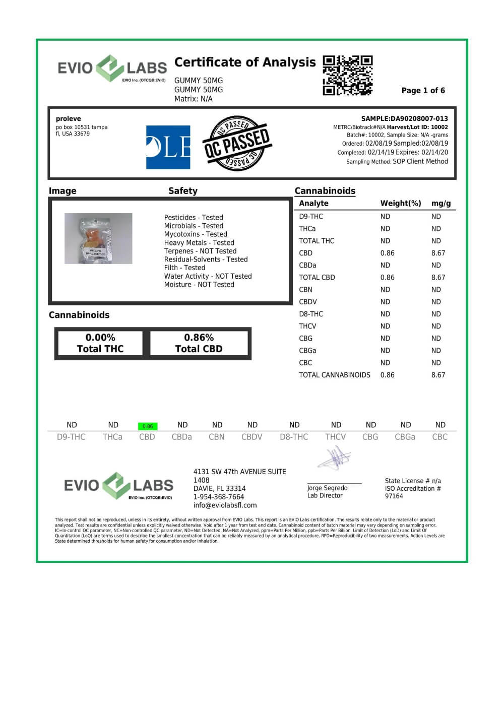 Proleve CBD Edible Gummy Slices PM Lab Report