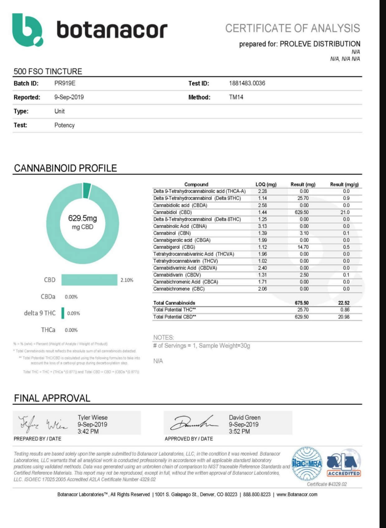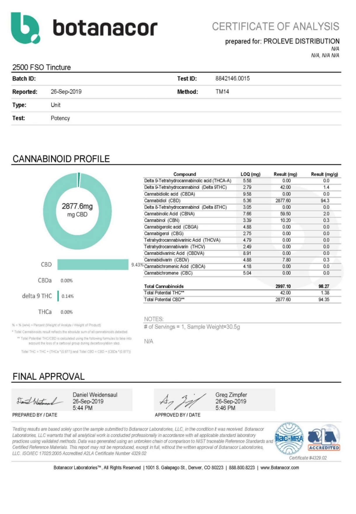 Proleve CBD Tincture Full Spectrum Oil 2500mg Lab Report