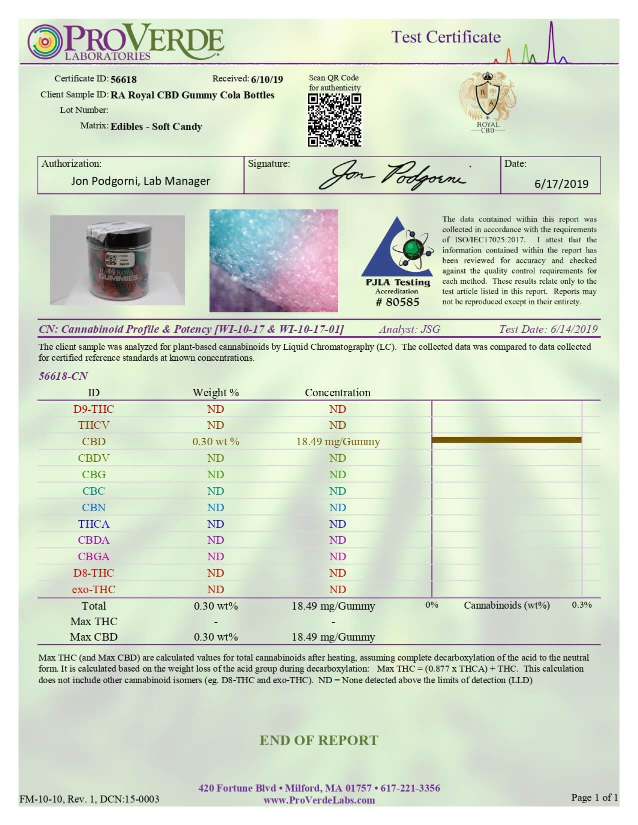 RA Royal CBD Edible Cola Bottles Gummies Lab Report