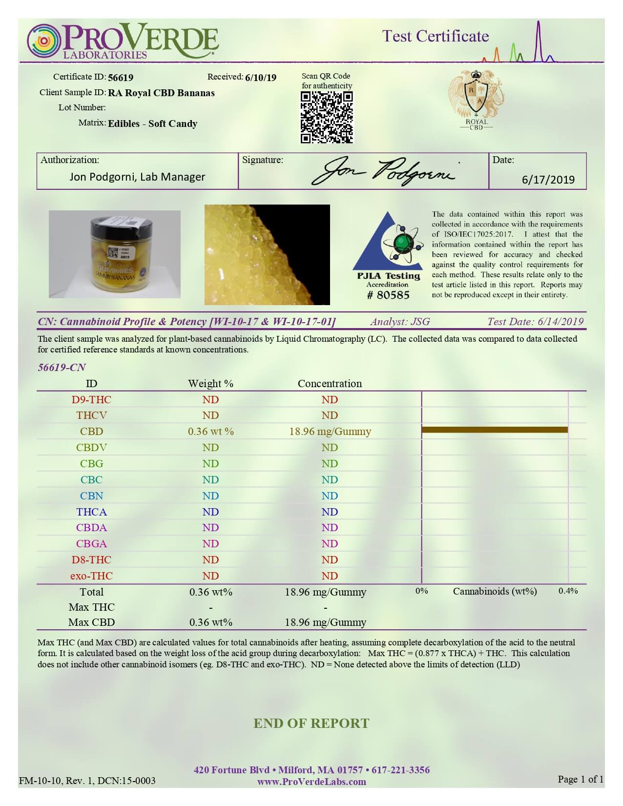 RA Royal CBD Edible Gummy Bananas Gummies Lab Report