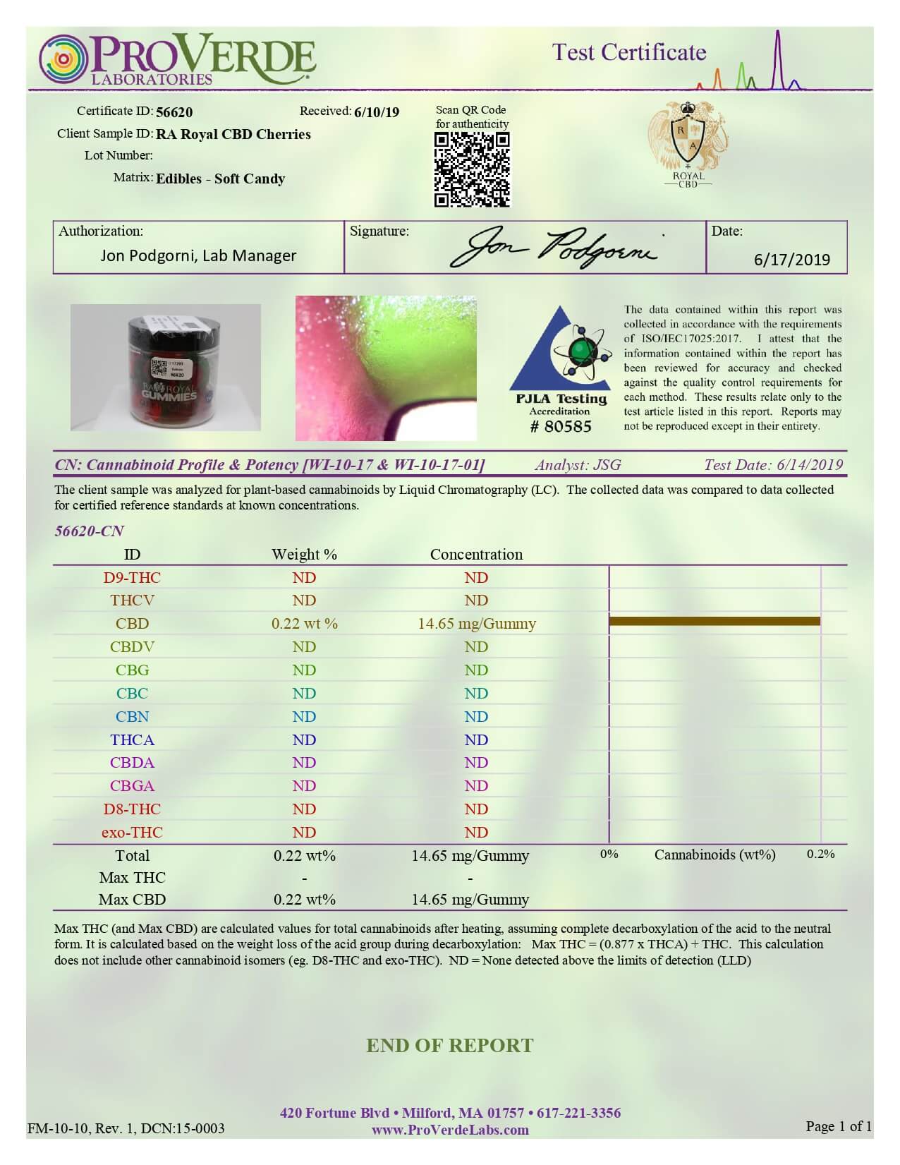 RA Royal CBD Edible Gummy Cherries Gummies Lab Report