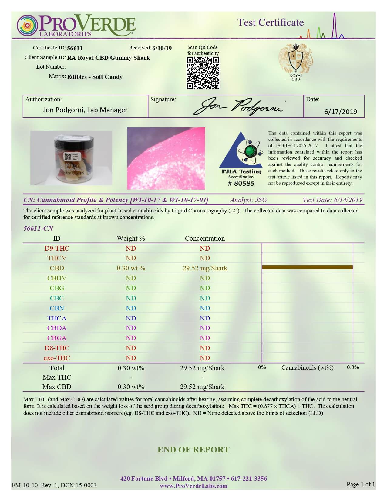 RA Royal CBD Edible Gummy Sharks Gummies Lab Report