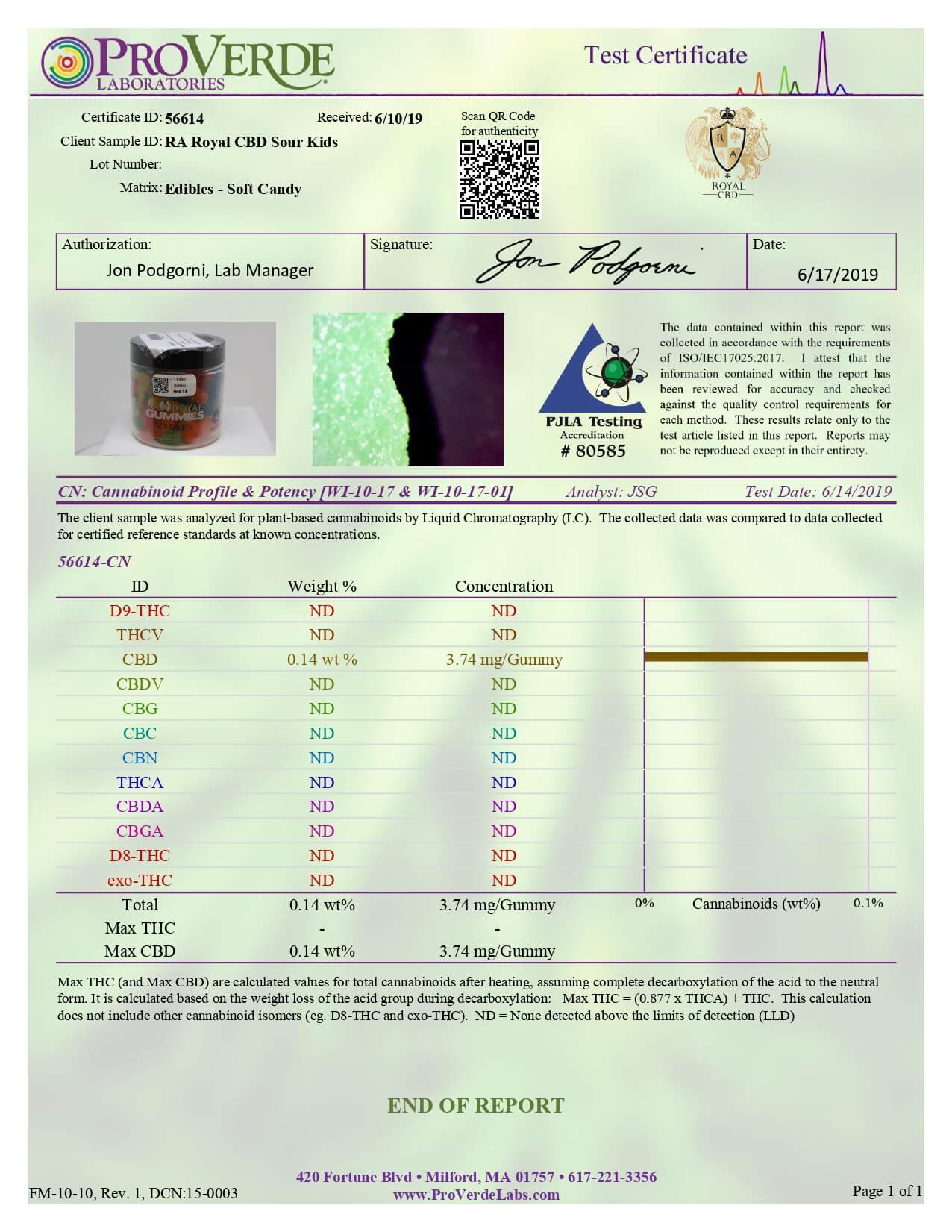 RA Royal CBD Edible Sour Kids Gummies Lab Report